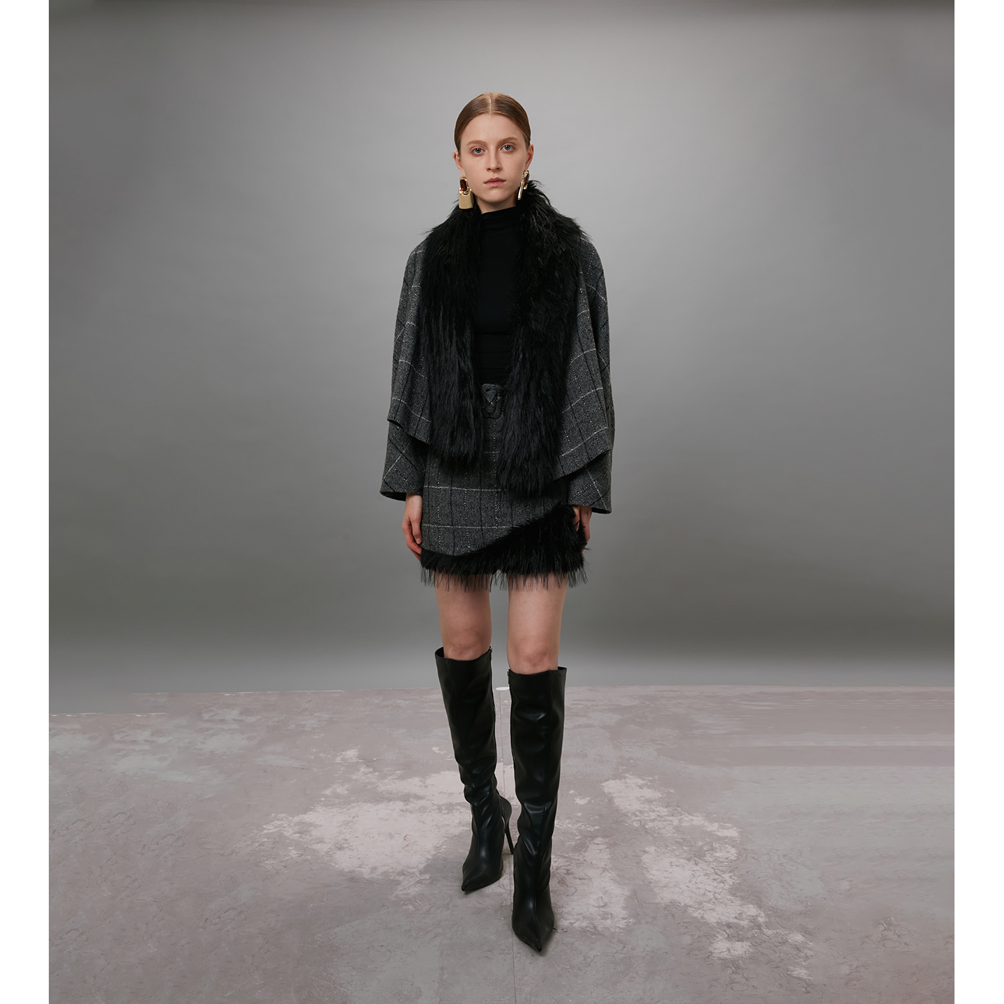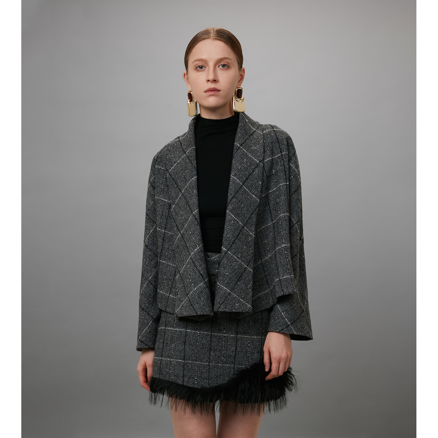CBZIZI原创设计羊毛高级感格纹毛呢外套短裙套装女2025秋冬新款