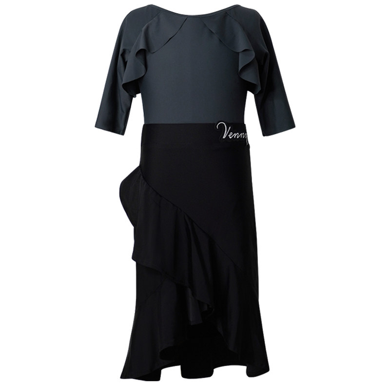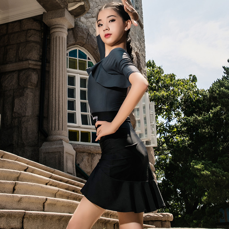 薇妮拉丁舞练功服女童夏季新款圆领短袖上衣国标舞训练服网红套装