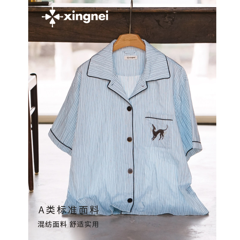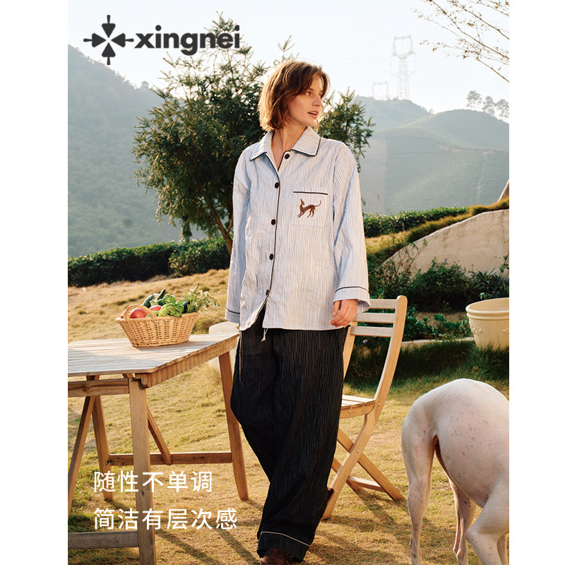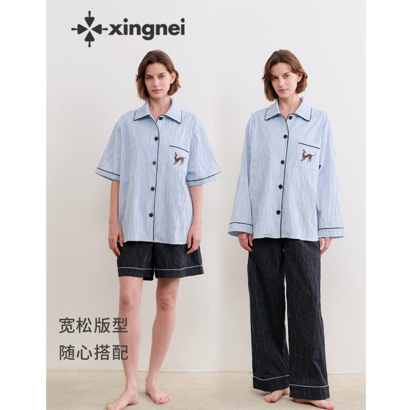 形内睡衣女条纹可外穿套装春夏季2026新款古巴领高级感亲肤家居服