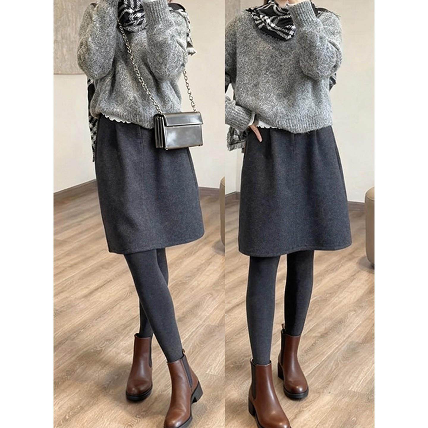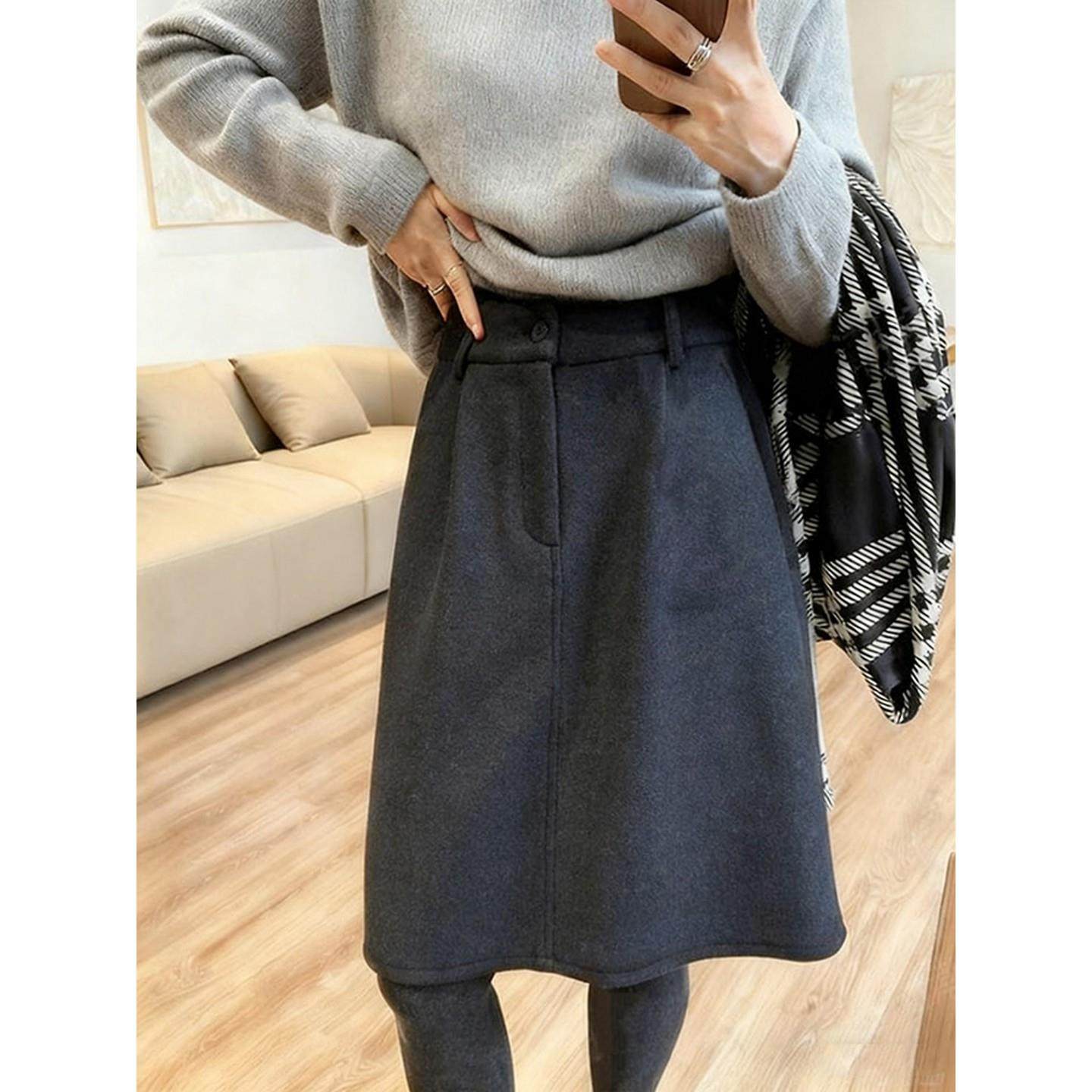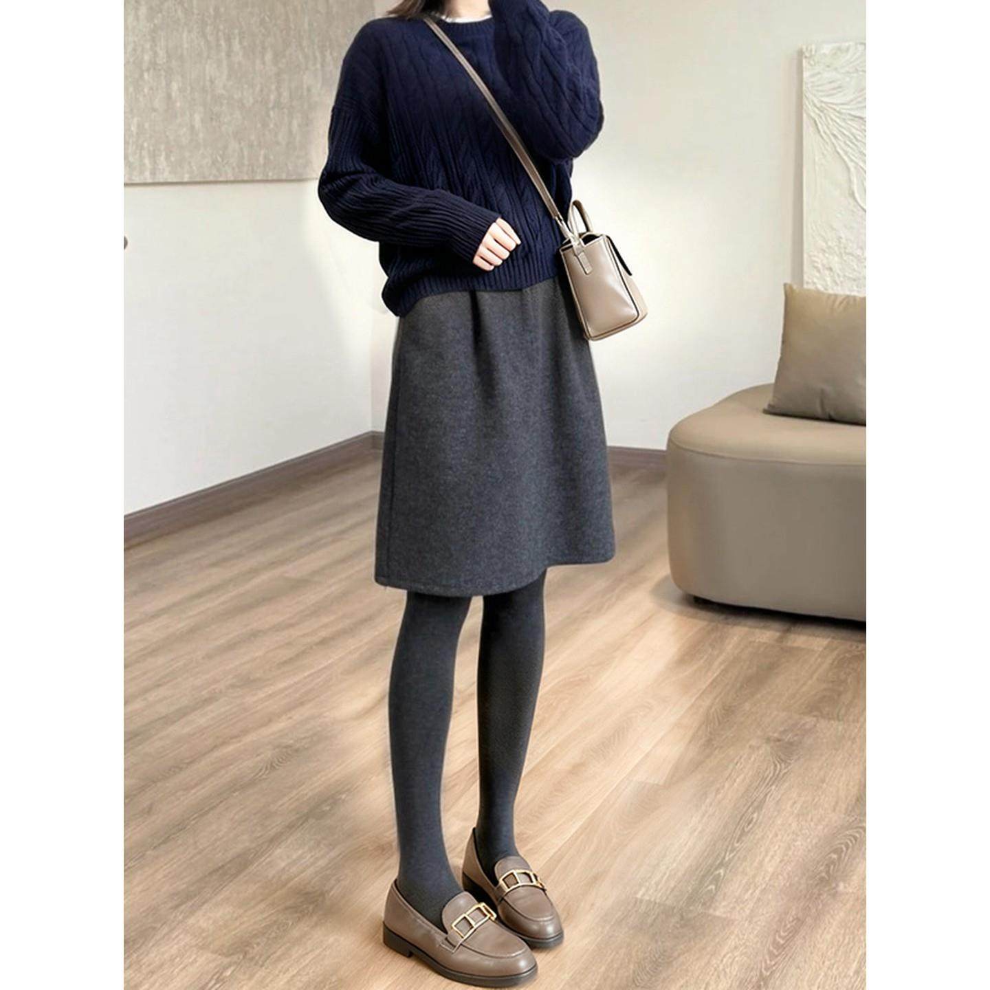 深灰色羊毛呢半身裙女秋冬新款高腰显瘦a字短裙气质呢子花苞中裙