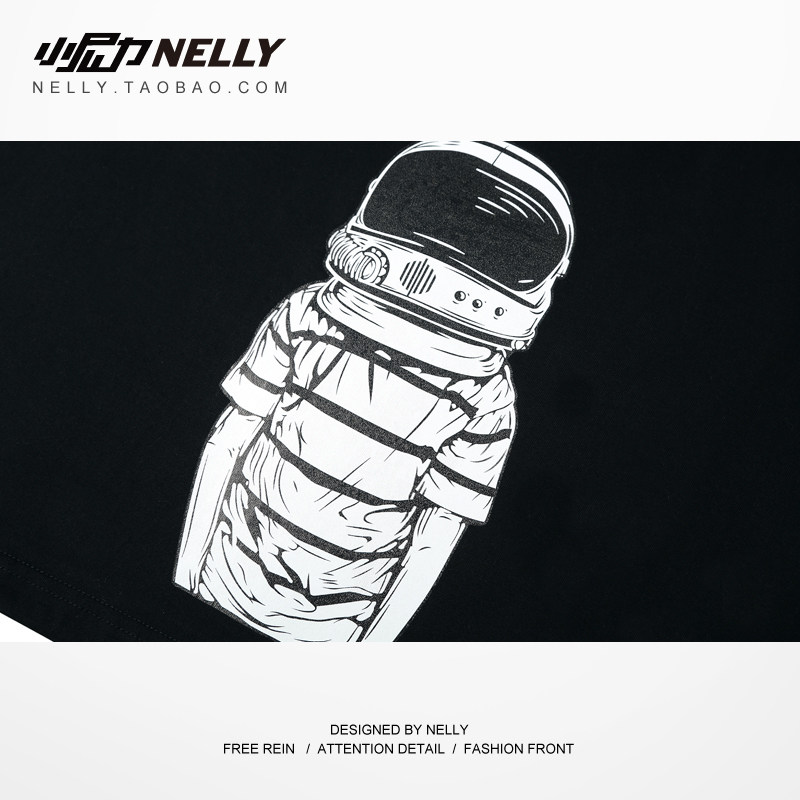 日系潮牌嘻哈卡通圆领纯棉加肥加大半截袖打底衫男士短袖t恤潮