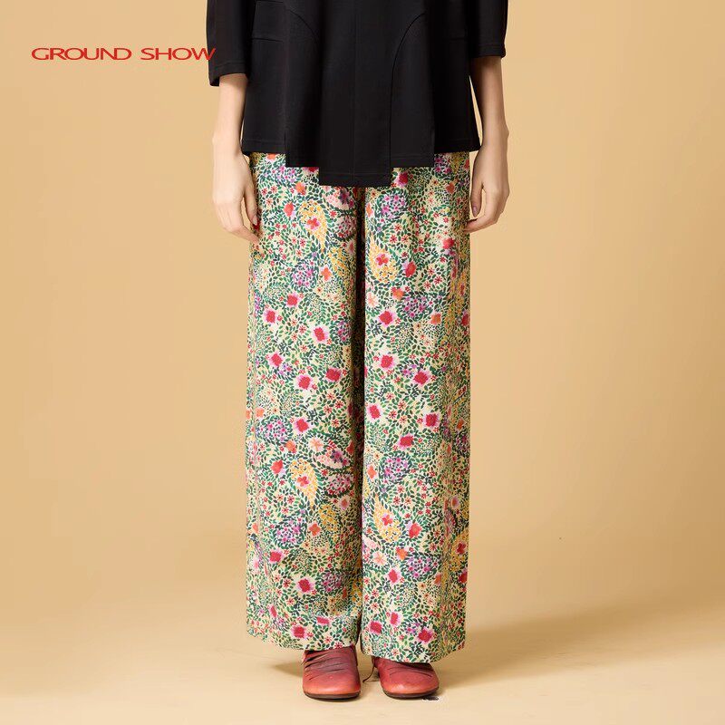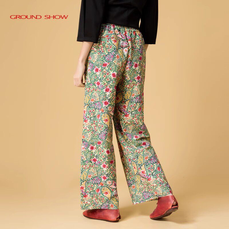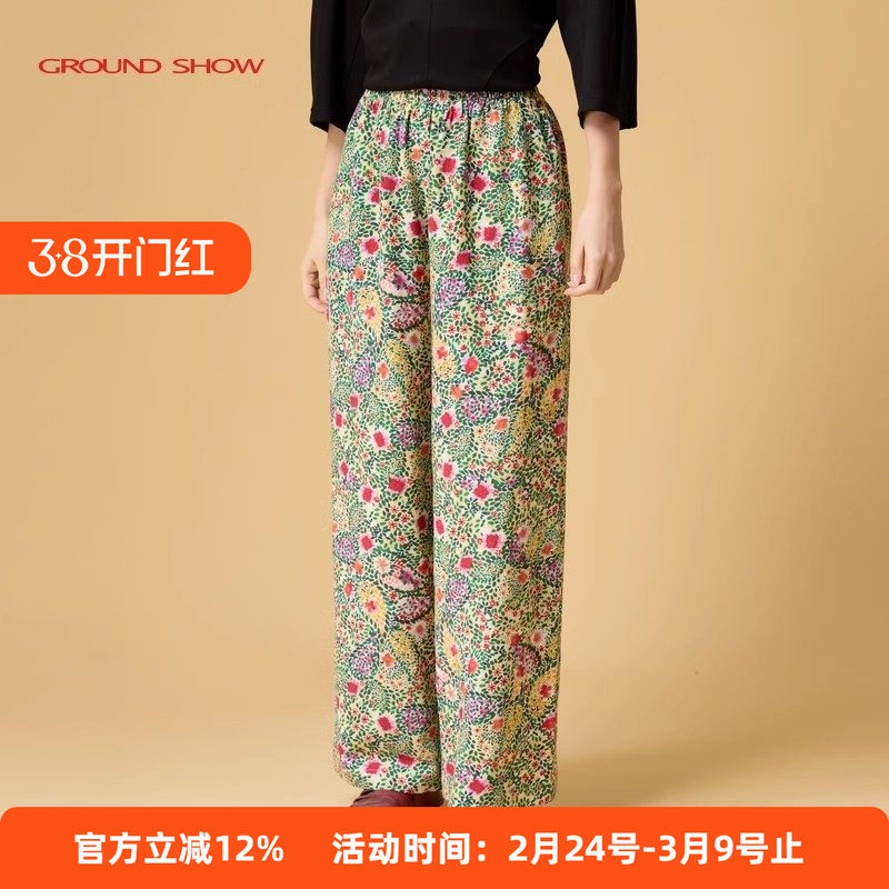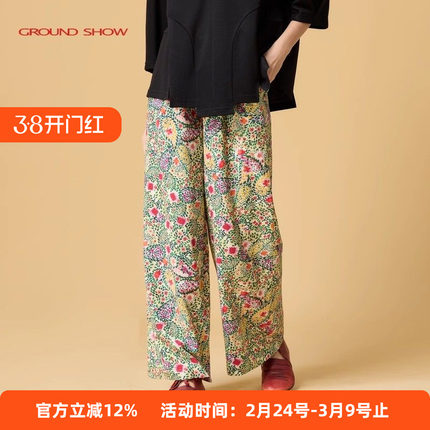 【天然环保面料】阁兰秀2025年春夏新品数码印花松紧腰9分阔腿裤