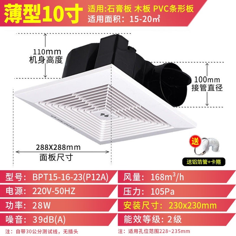 金羚排气扇8寸卫生间排风扇换气机强力静音吸顶式厕所扇管道抽风