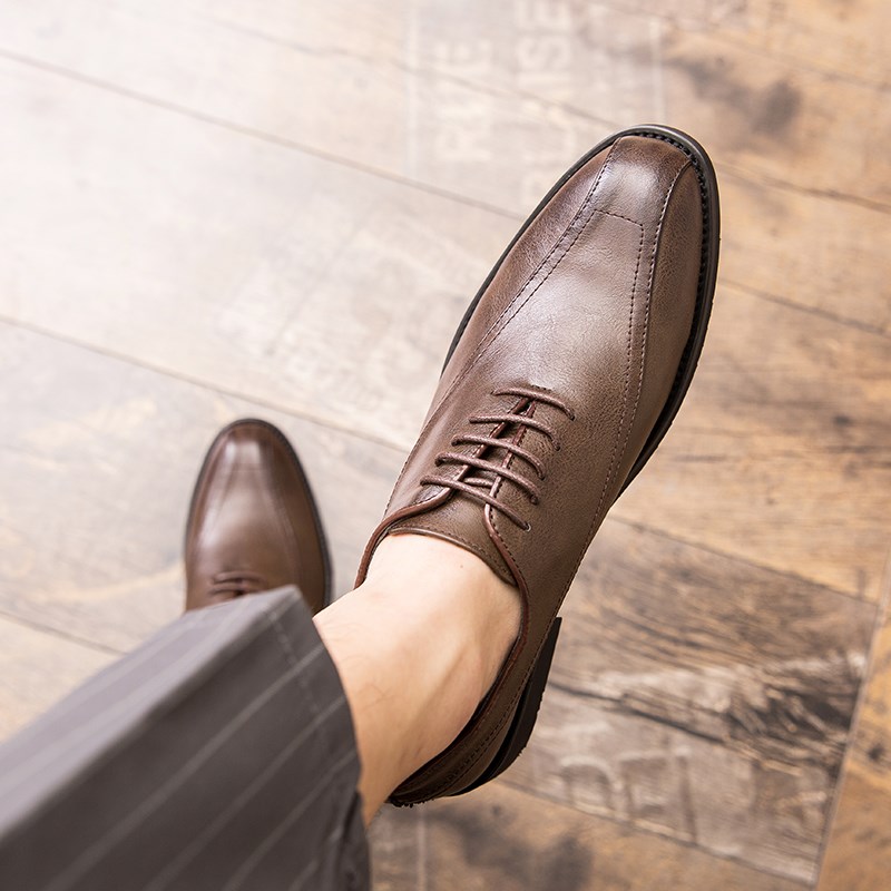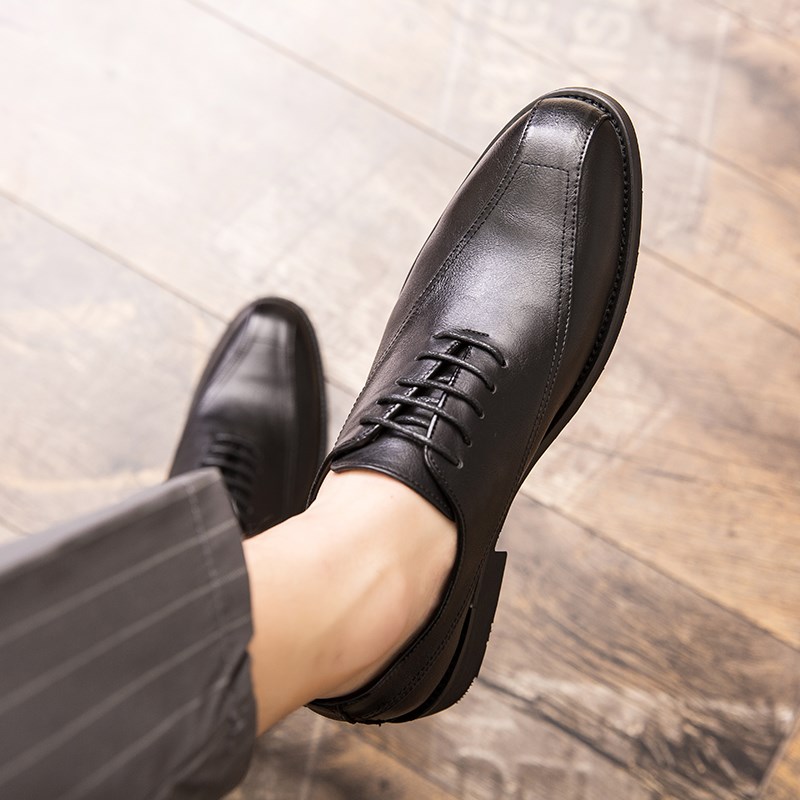 韩版潮流系带商务休闲鞋子男鞋英伦风黑色尖头皮鞋男百搭内增高夏