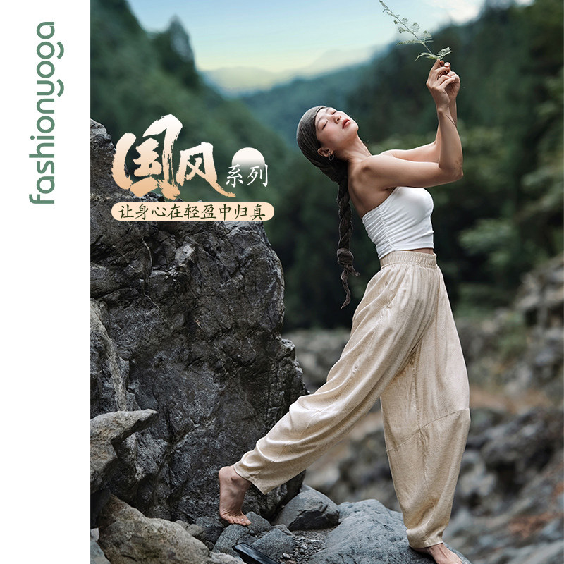 凡圣瑜伽服中式透气松驰感禅意禅风裤灯笼瑜伽裤男女同款FM14935