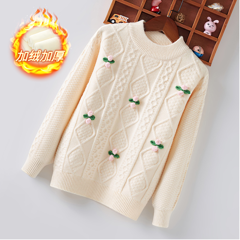 女童毛衣圆领套头秋冬针织衫中大童线衣打底衫加绒加厚低领女孩