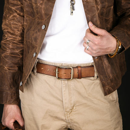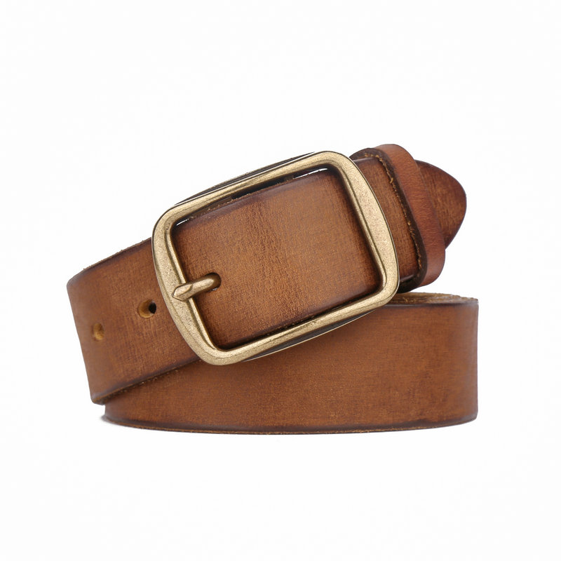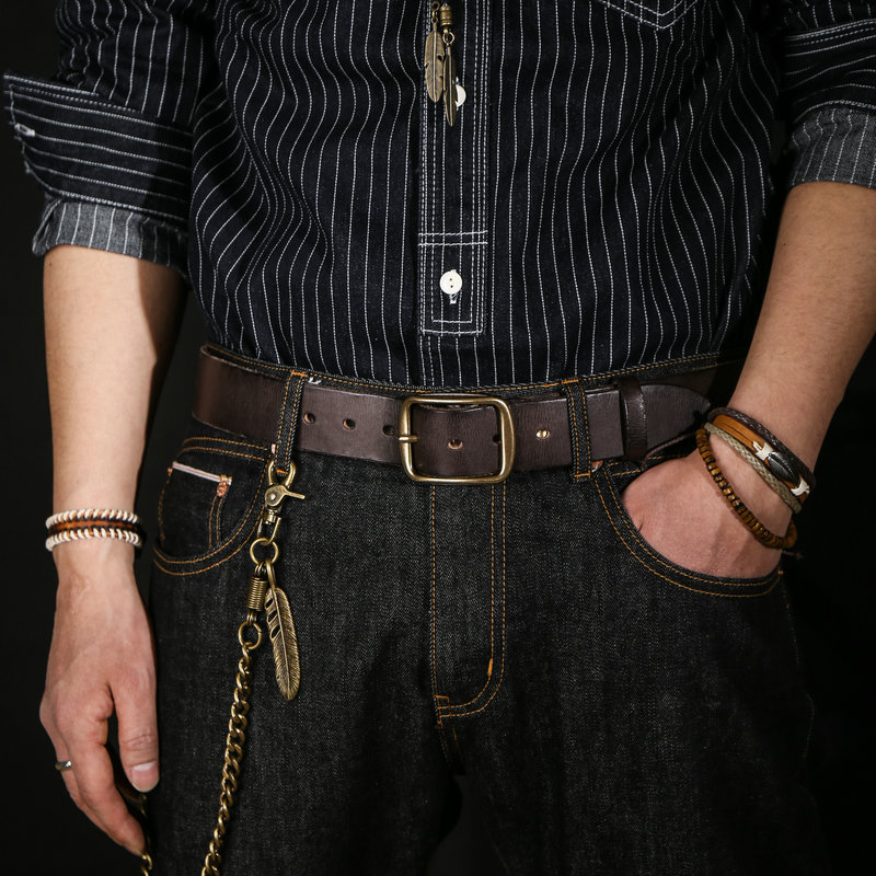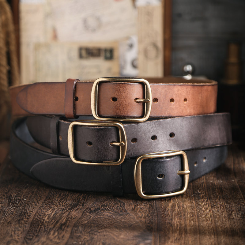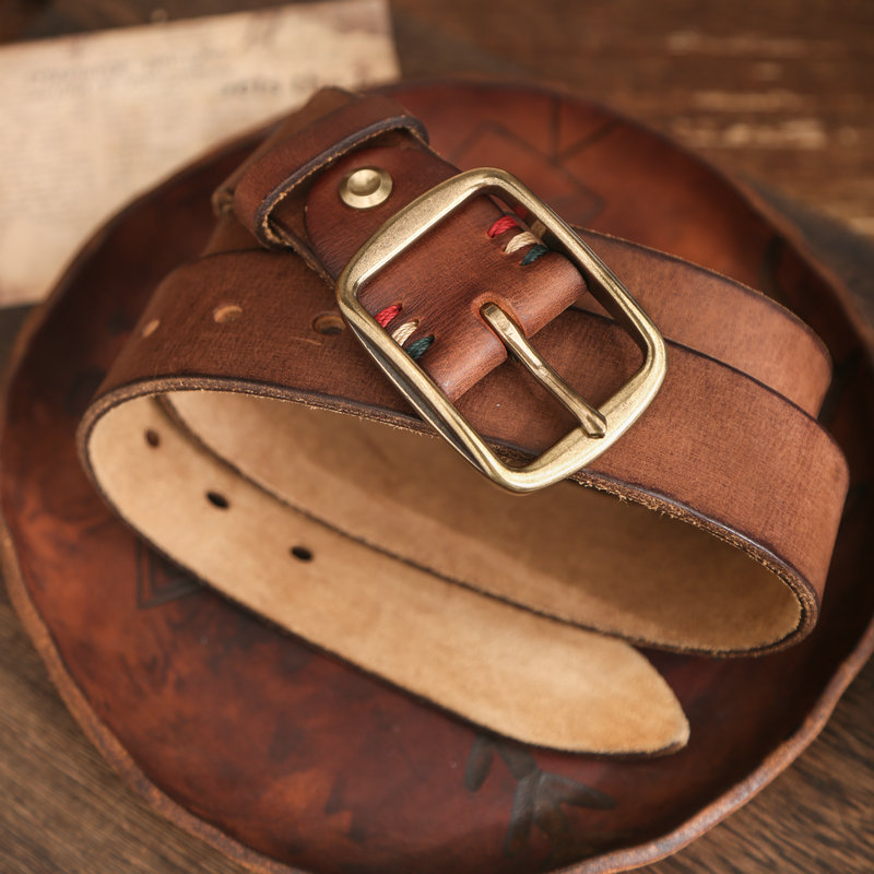 加厚5mm手工黄铜复古美式皮带男款真皮纯牛皮做旧工装牛仔裤腰带