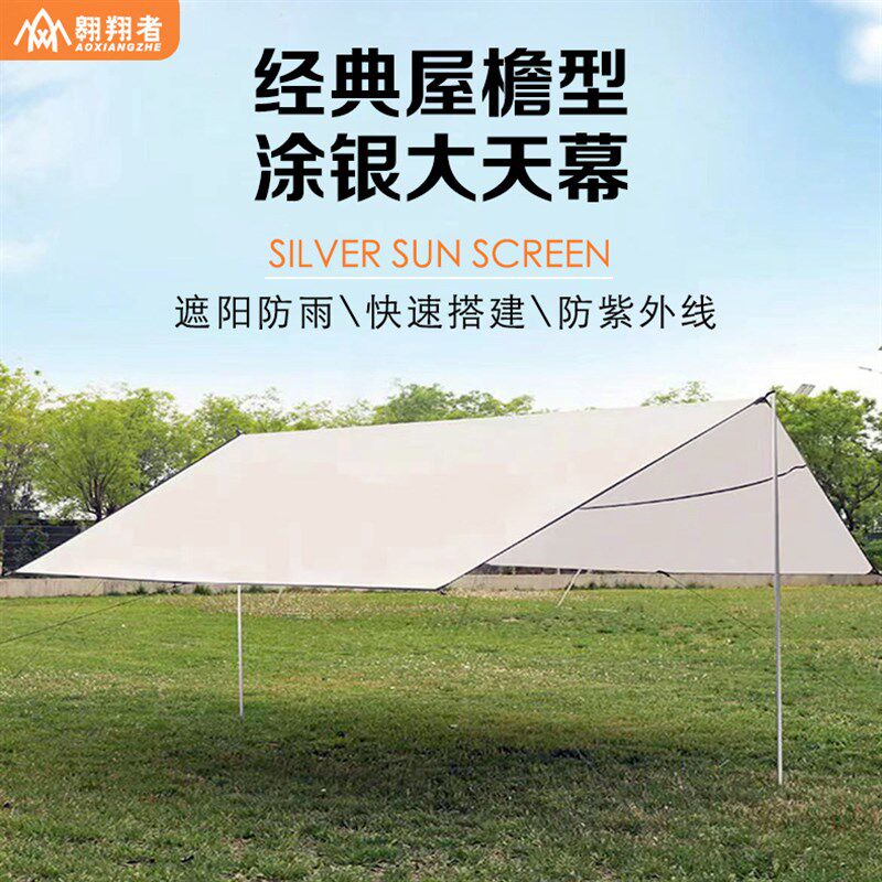 加大六角黑胶天幕帐篷户外露营遮阳加厚涂银天幕牛津布便携遮阳棚