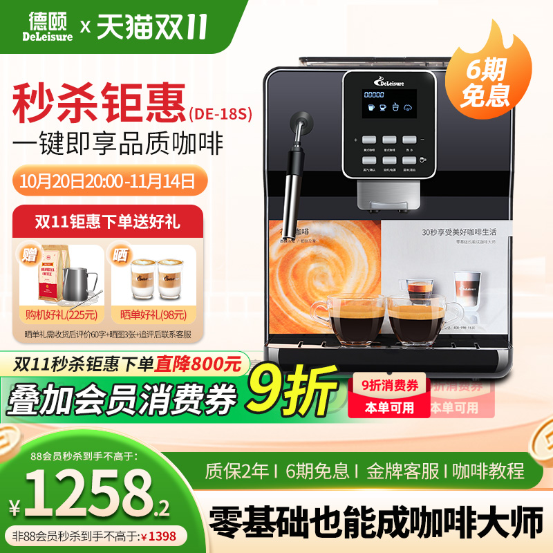 德颐DE-18S家用全自动咖啡机现磨豆小型意式美式办公室商用打奶泡