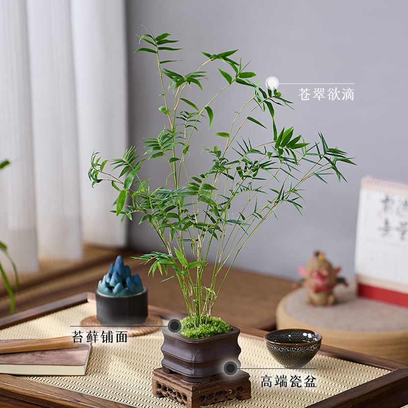 米竹盆栽苔藓凤尾竹室内微型观赏竹盆景客厅桌面植物四季常青绿植