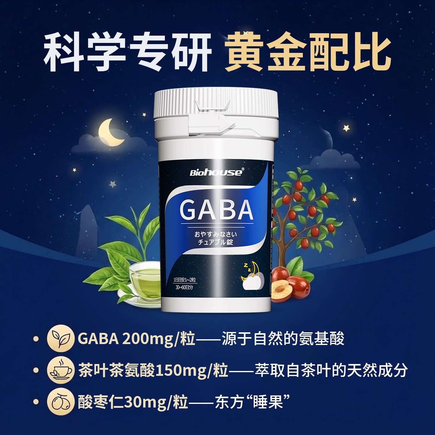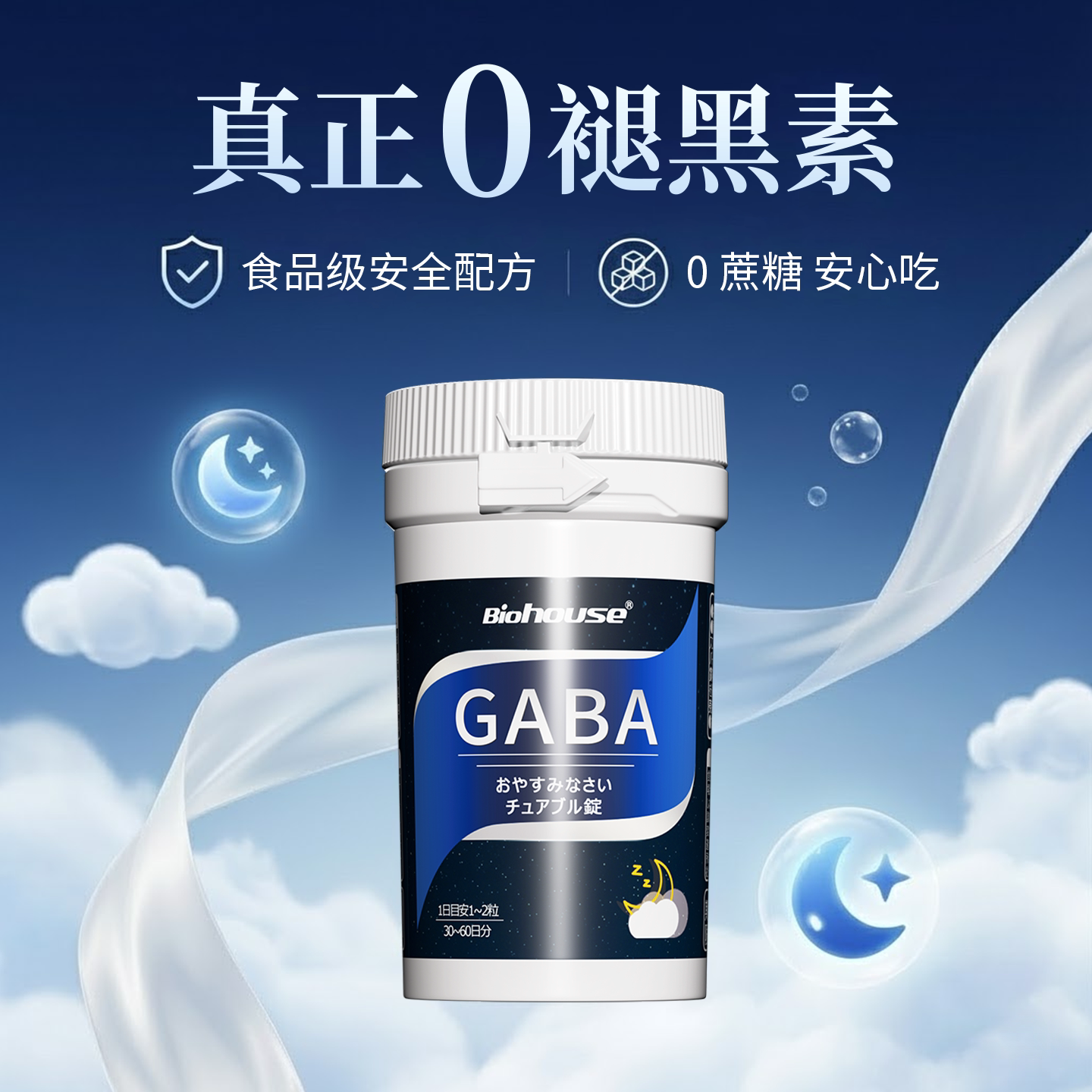 日本biohouse晚安片进口gaba茶氨酸 γ氨基丁酸非助退褪黑素软糖