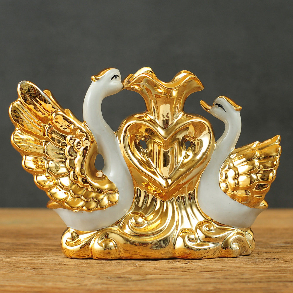 天鹅摆件花瓶创意陶瓷结婚礼物