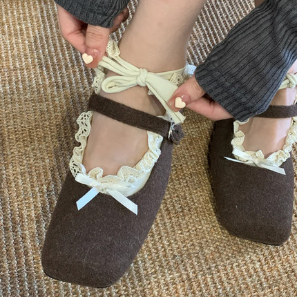 芭蕾舞风船袜女夏季薄款花边哇哒系蕾丝绑带纯棉袜套配小皮鞋袜子