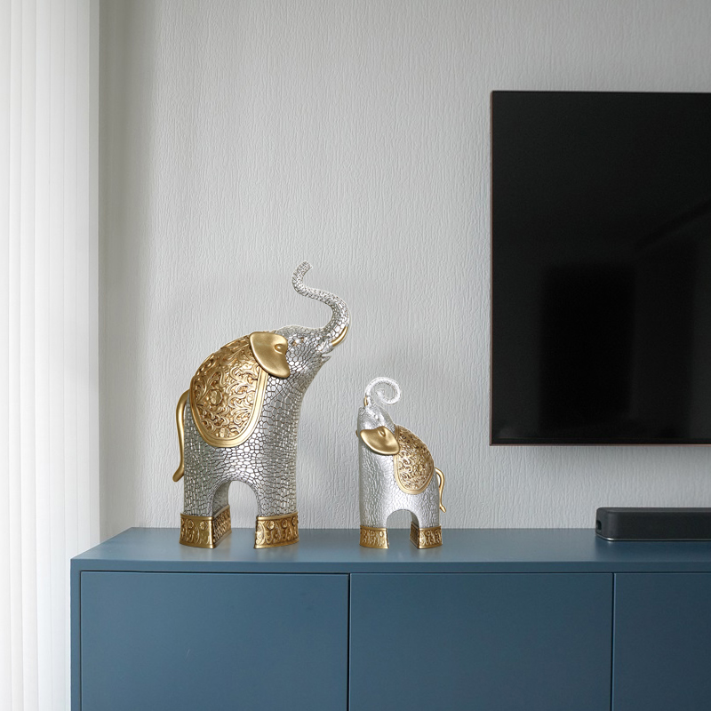 大象招财摆件一对客厅玄关办公室桌面酒柜电视柜家居装饰工艺礼品