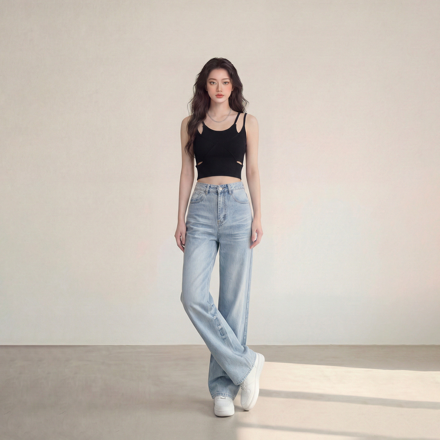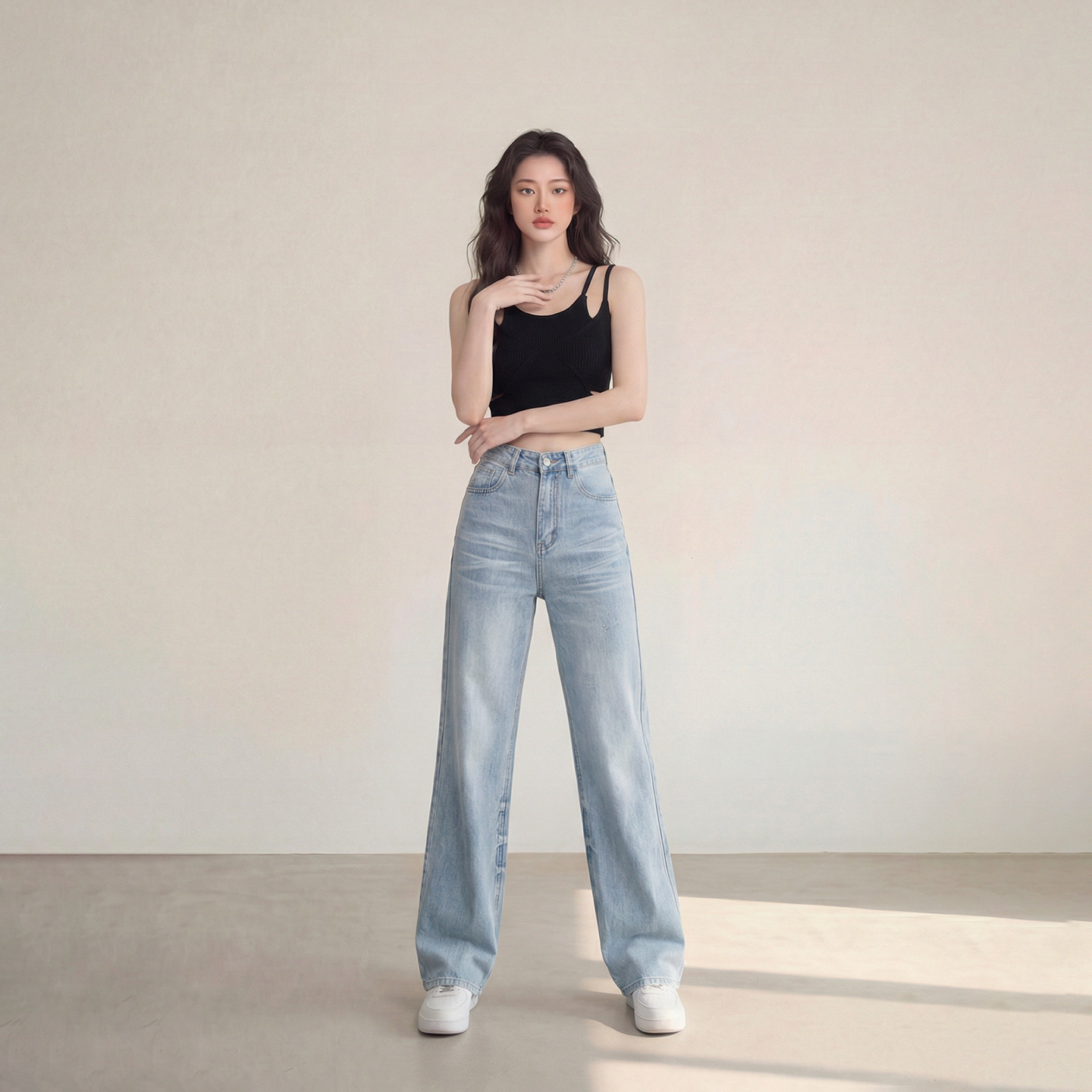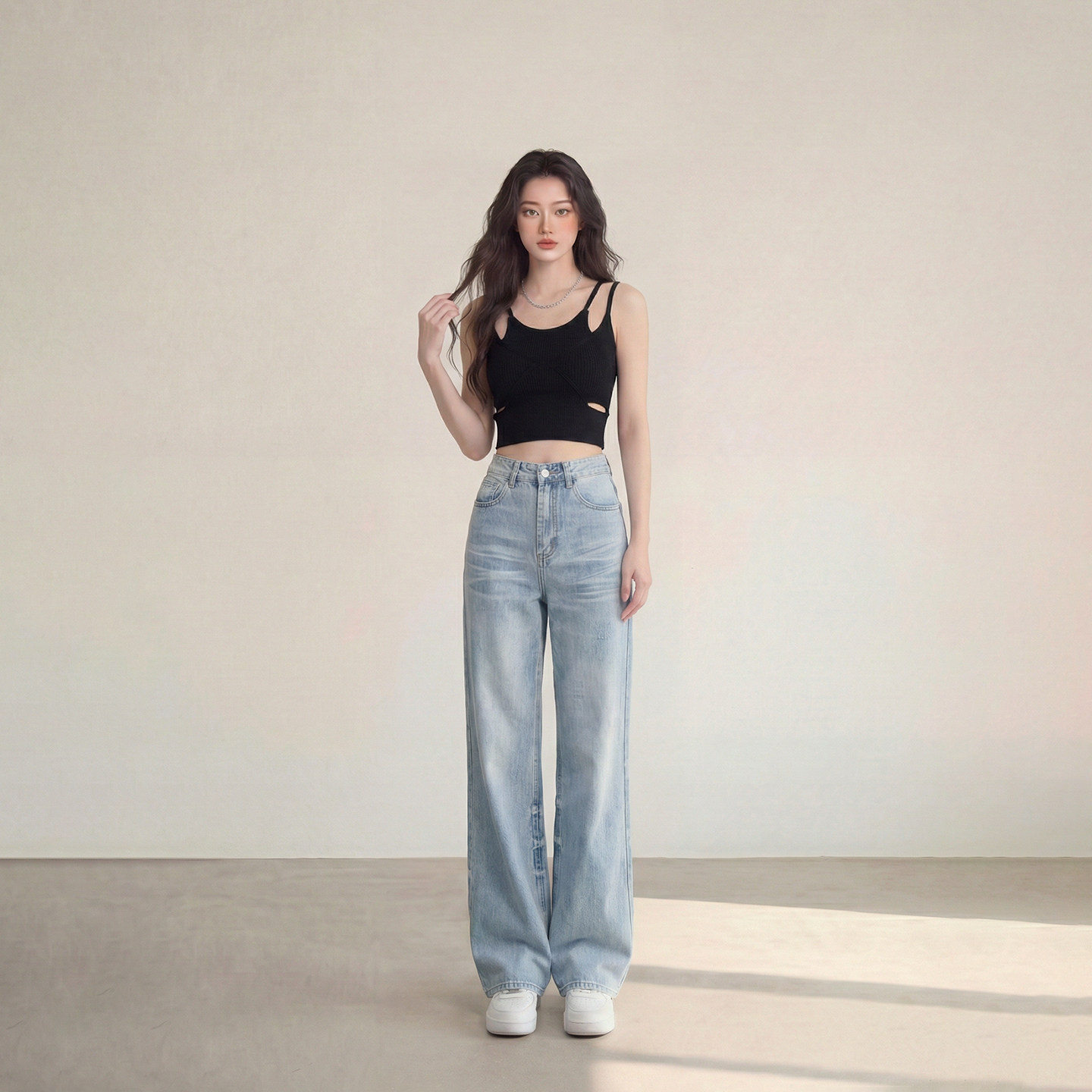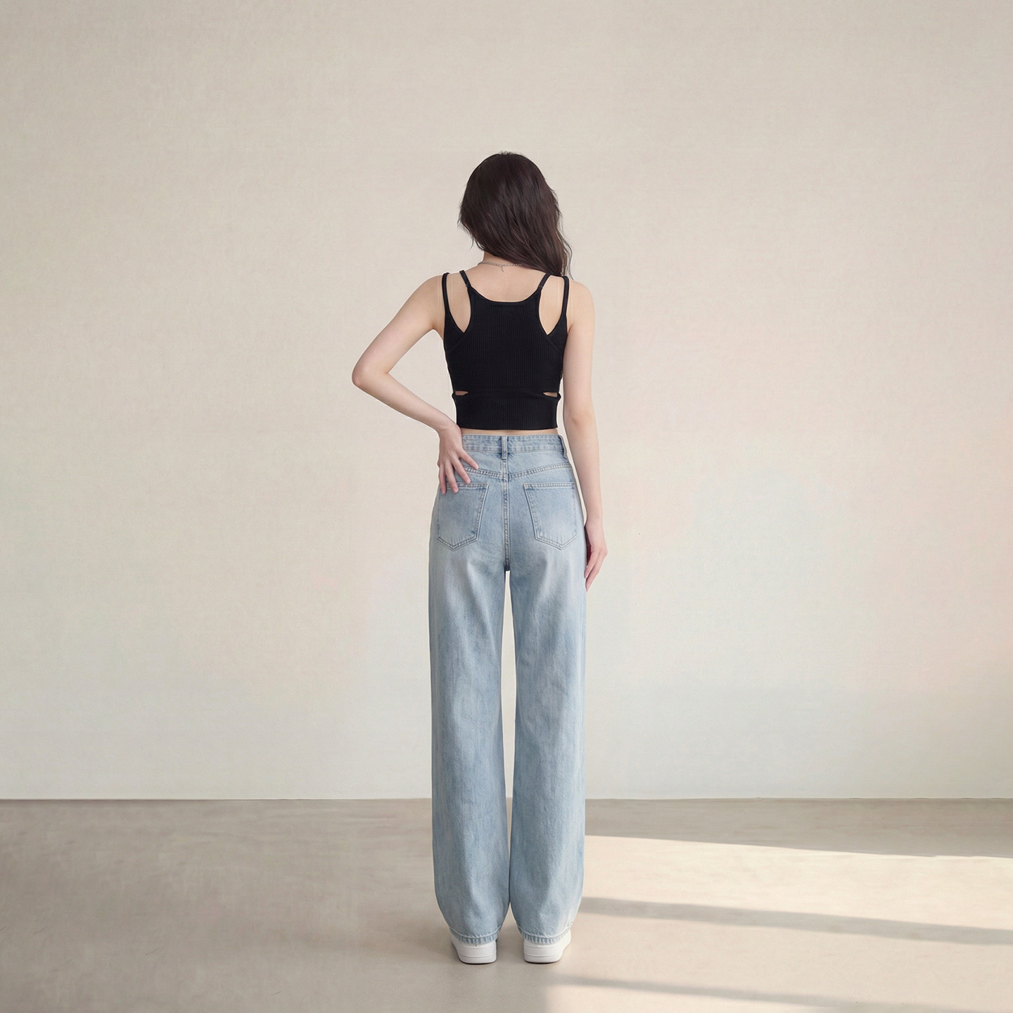 艾格复古高腰窄版阔腿牛仔裤女2026宽松直筒长裤显瘦百搭休闲裤