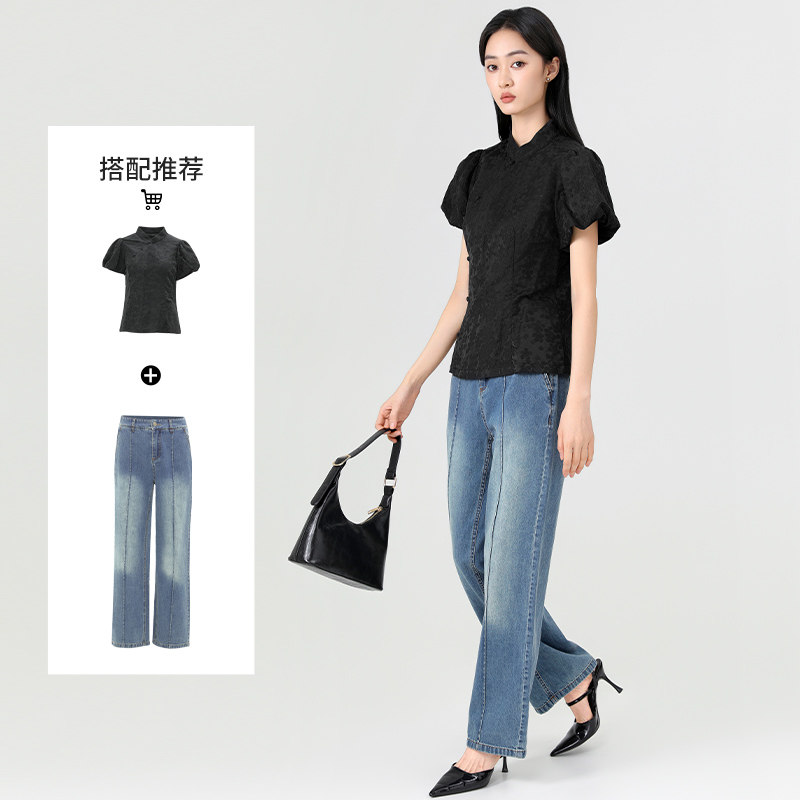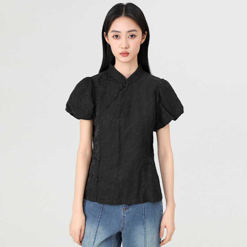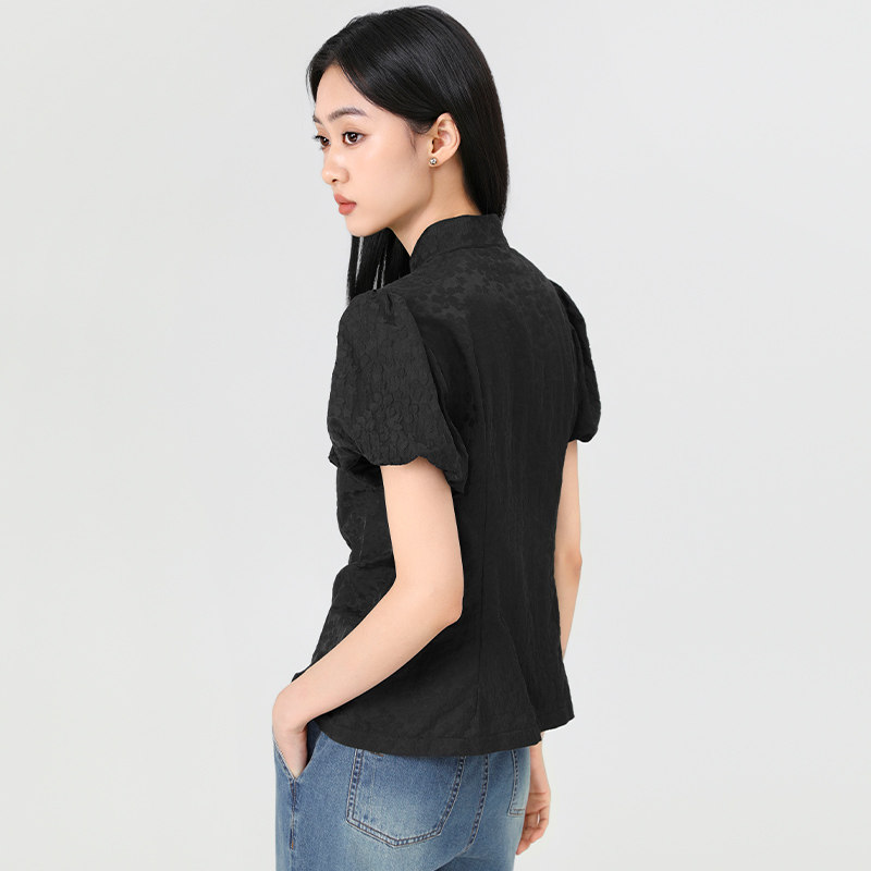 傲丝度新中式短袖衬衫女夏季收腰显瘦小衫国风上衣小个子气质衬衣