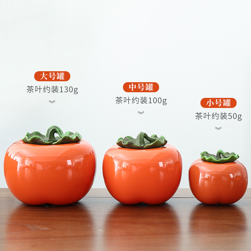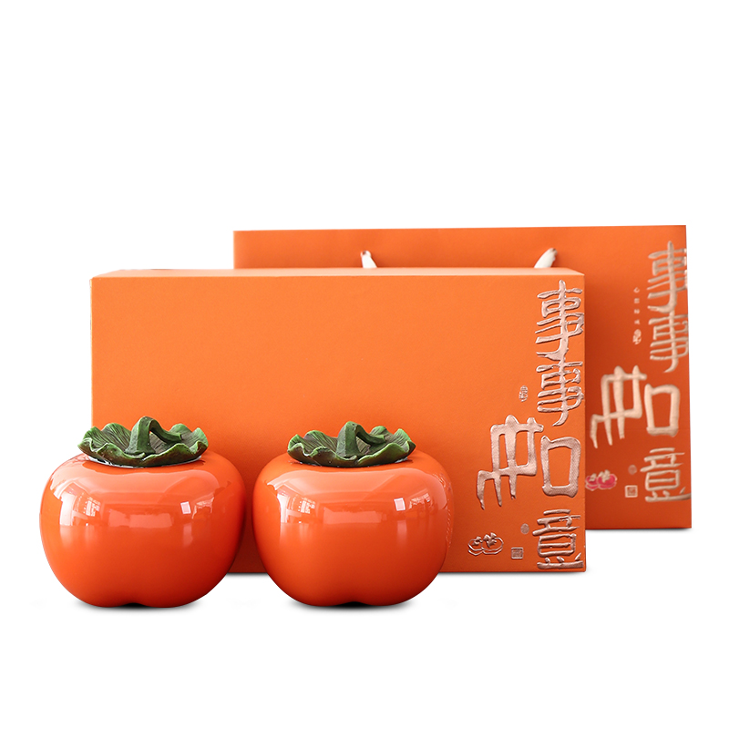 均能手造 茶叶包装盒空礼盒 迷你柿子茶叶罐陶瓷便携小号创意摆件