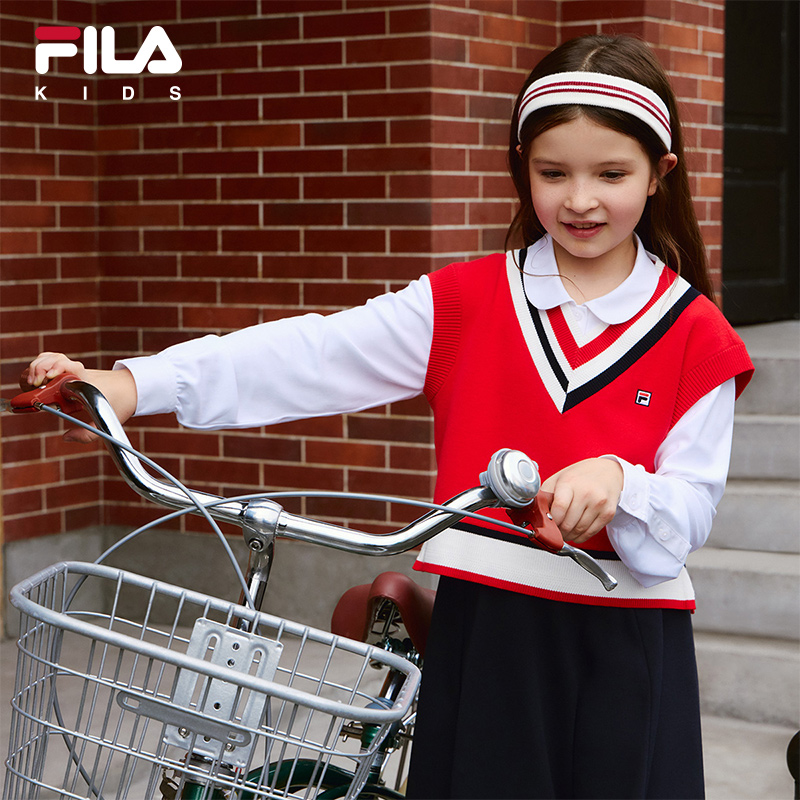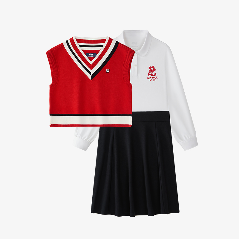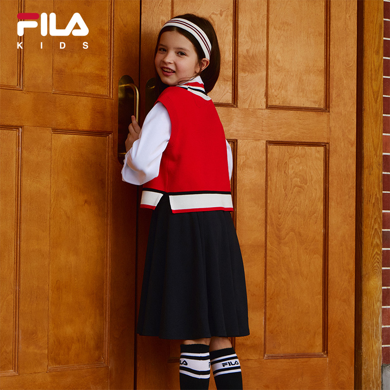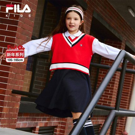 FILA斐乐女童裙子2025年春季新款中大童红色儿童连衣裙两件套潮