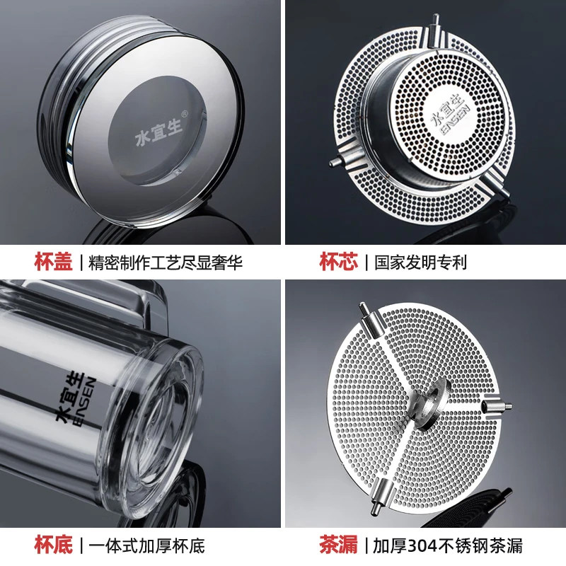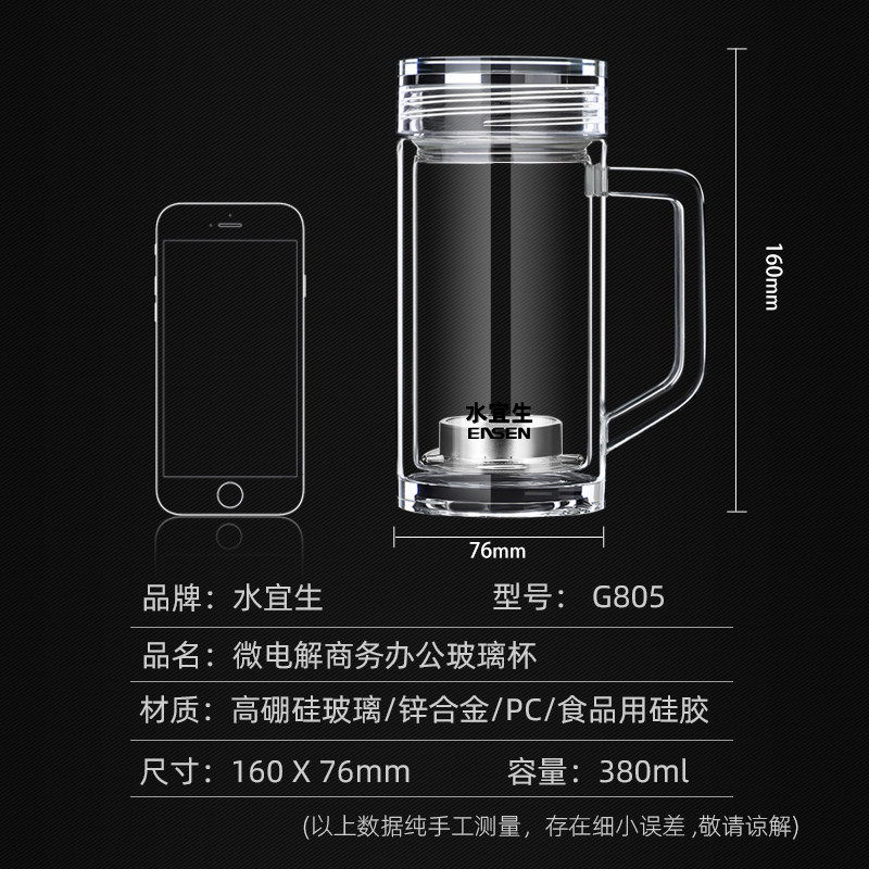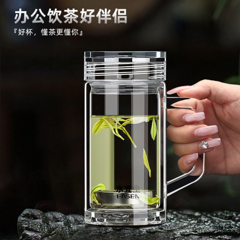 水宜生双层隔热玻璃杯大容量耐热防爆耐高温带把手泡茶杯个人专用