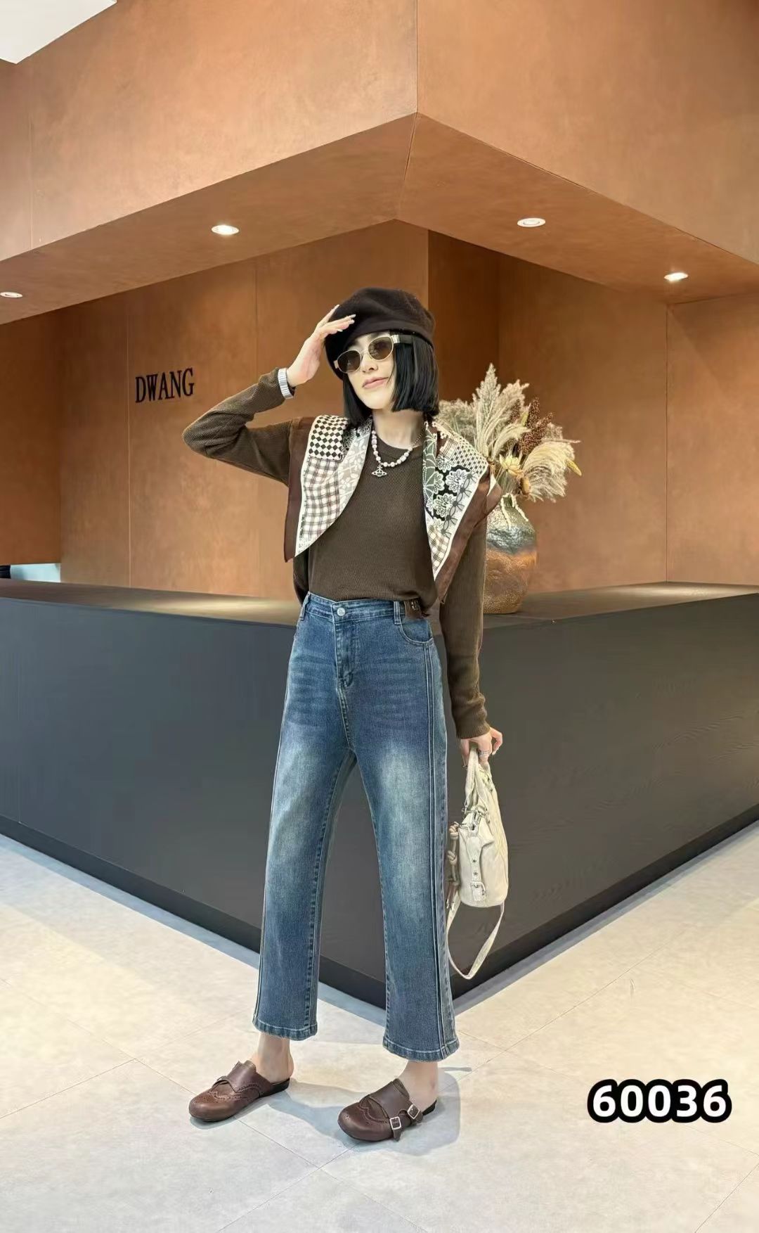 2025新款复古蓝色牛仔裤直筒显瘦裤子女高腰裤60036