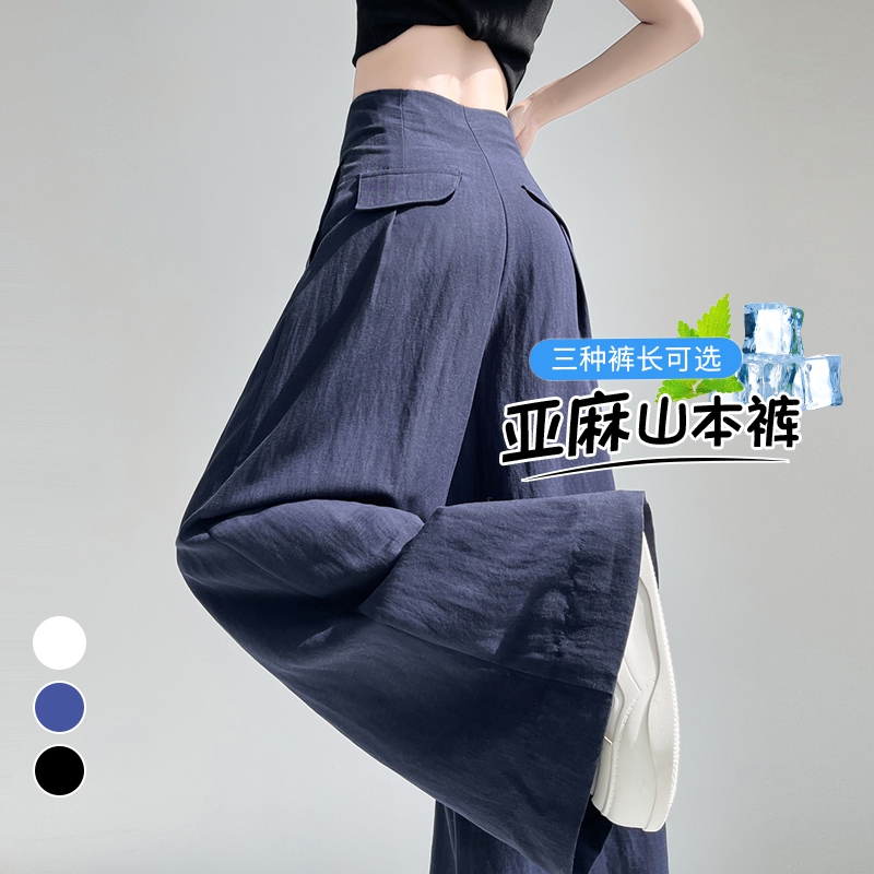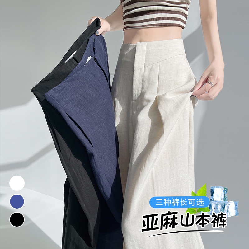 实拍2025夏季新款亚麻冰丝阔腿裤高腰棉麻山本裤薄款休闲裤女