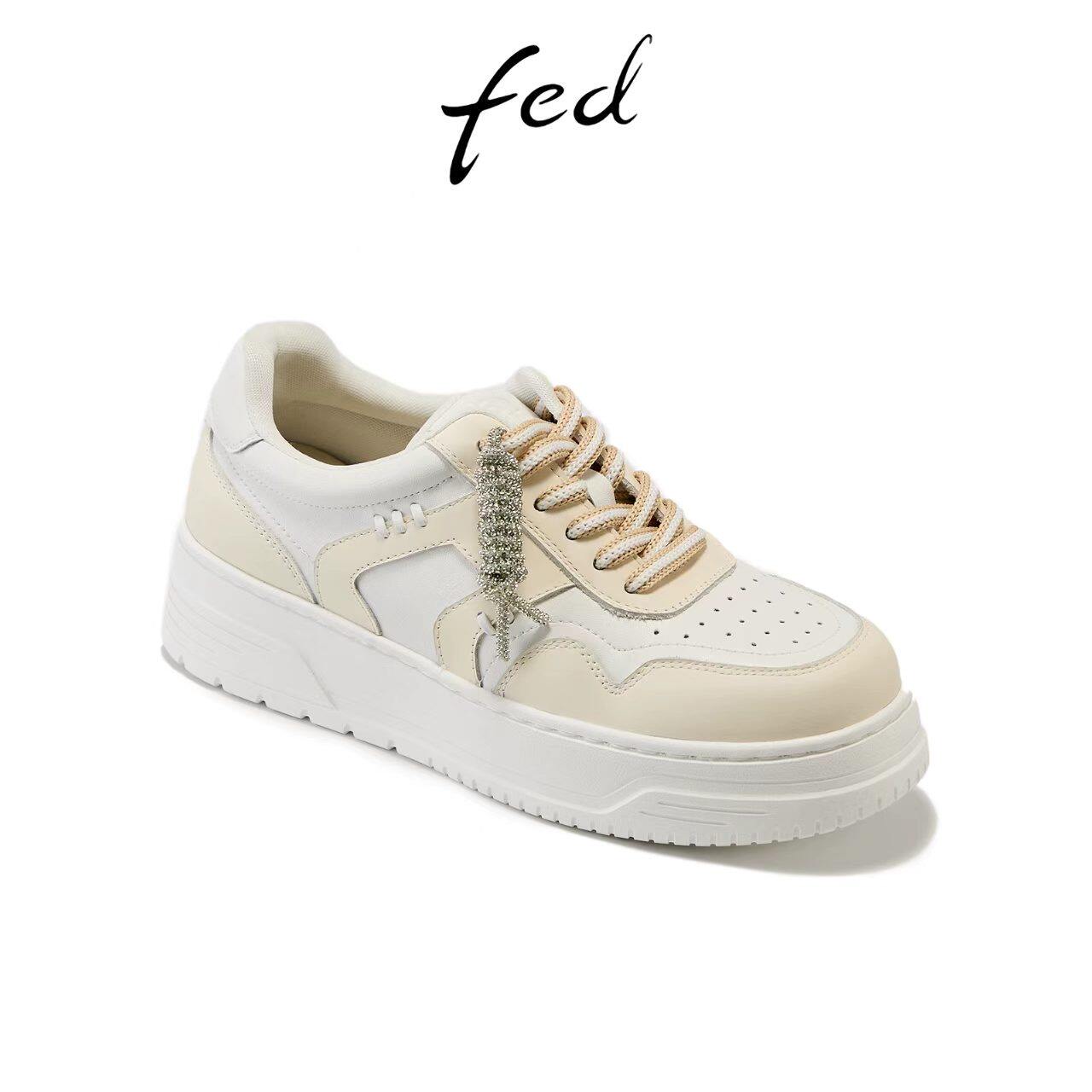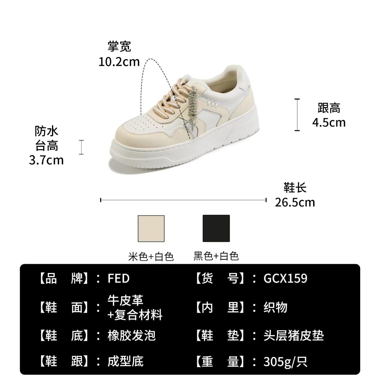 FED商场专柜同款2026新款时尚休闲系带厚底增高平底女板鞋GCX159