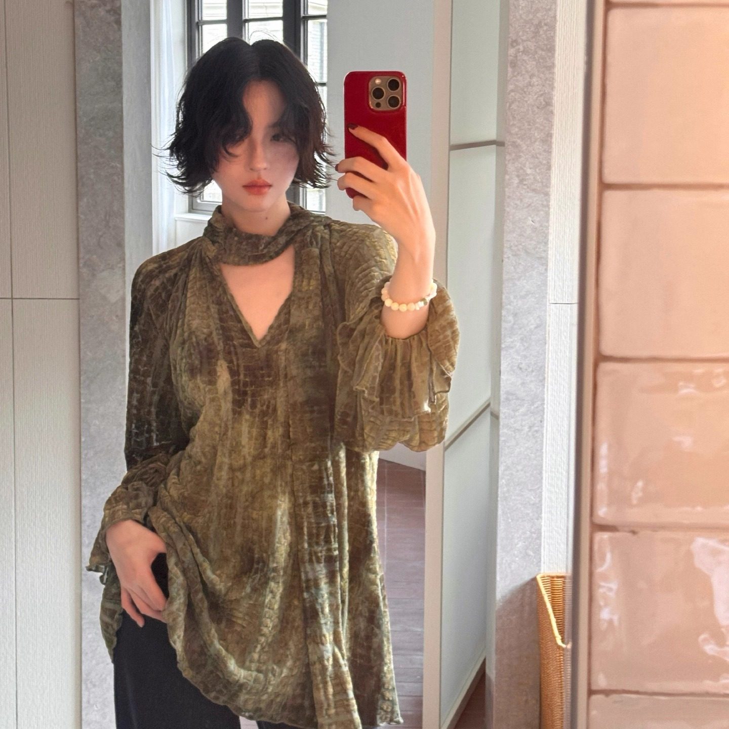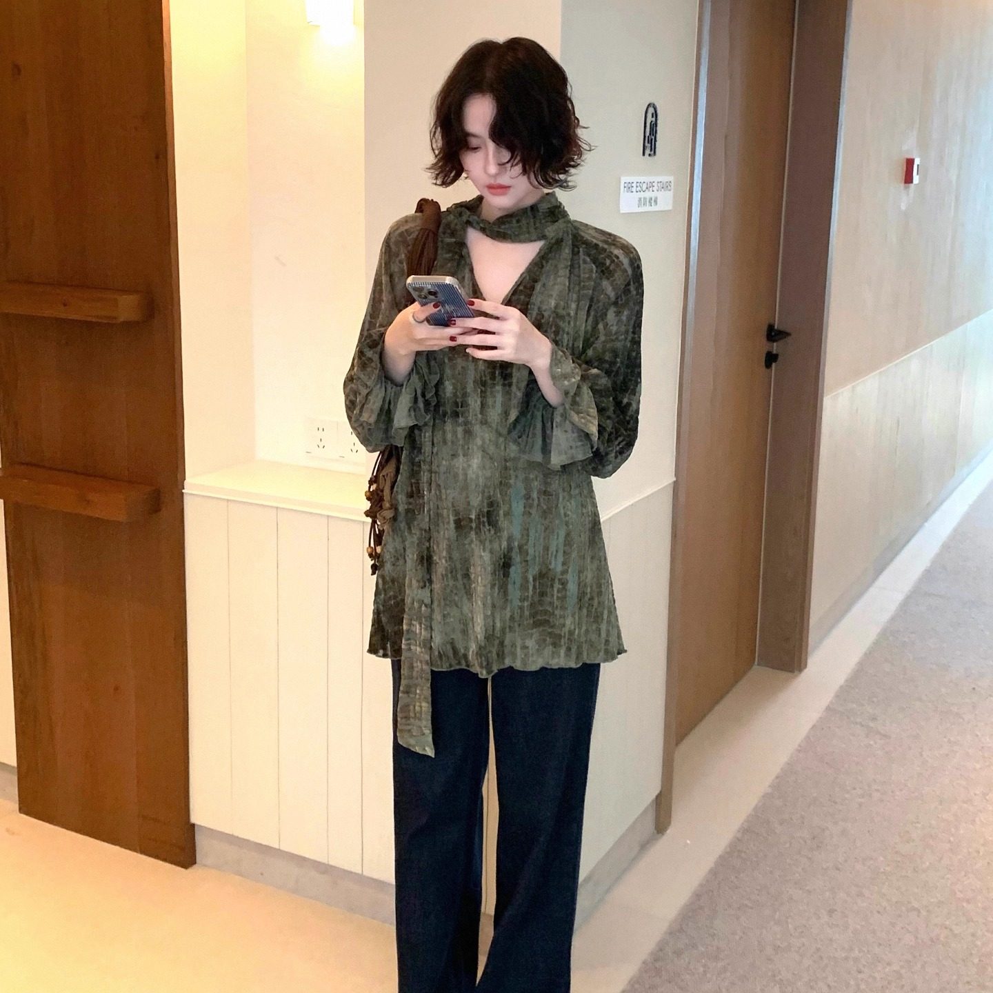 酒午自制【鎏光金焰】港风复古秋季晕染宽松衬衫+吊带背心两件套