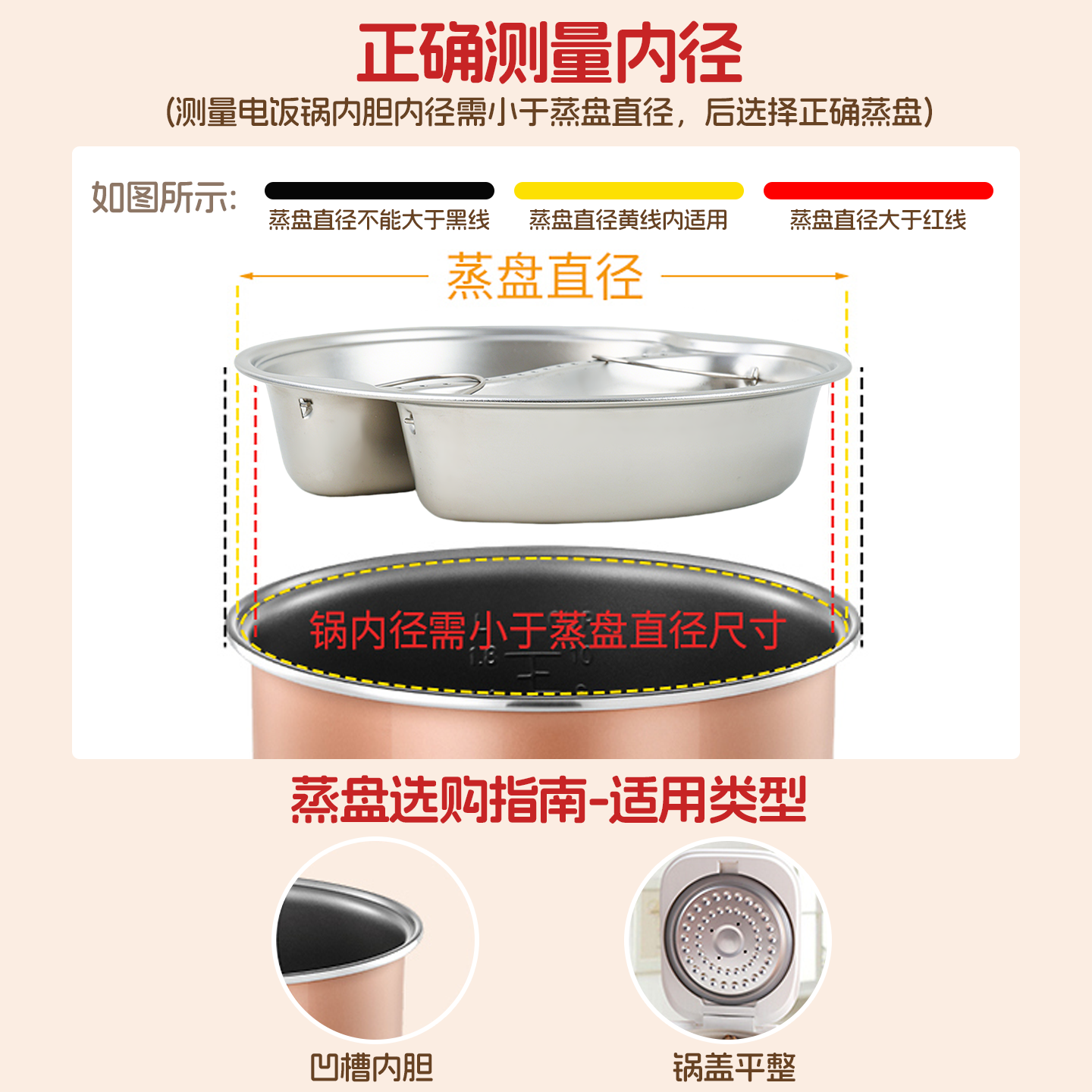 沃德百惠鸳鸯蒸菜盘304不锈钢二格分隔蒸碗电饭煲内蒸格蒸屉蒸笼