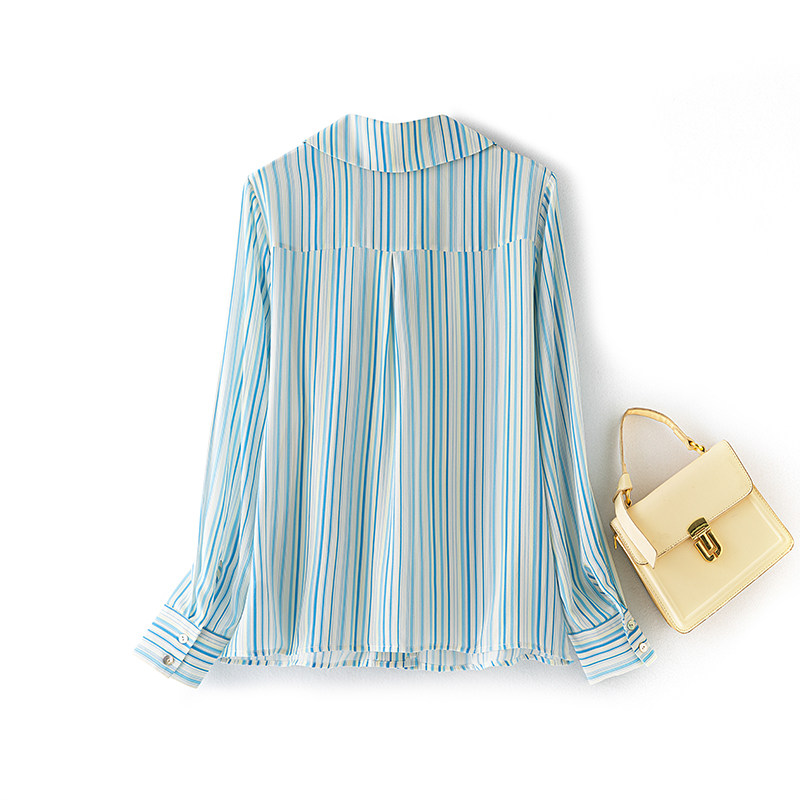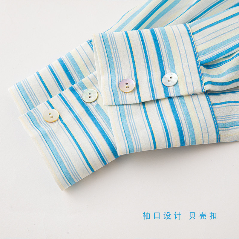宽松学院风条纹长袖真丝衬衫女