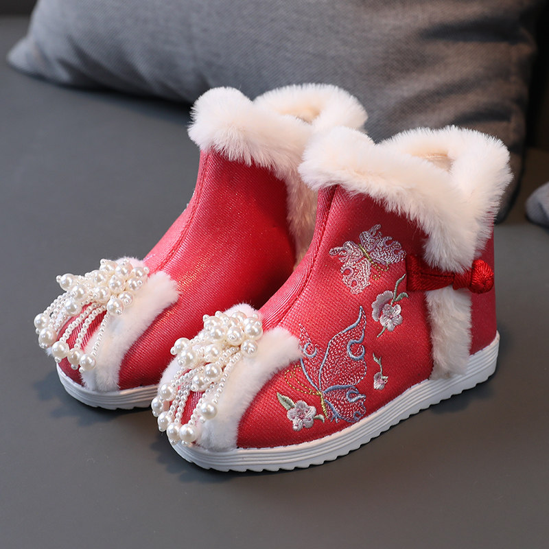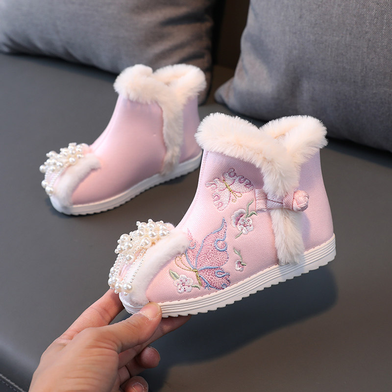 儿童绣花鞋汉服鞋子女童冬季雪地靴古装配马面裙鞋中国风拜年鞋子
