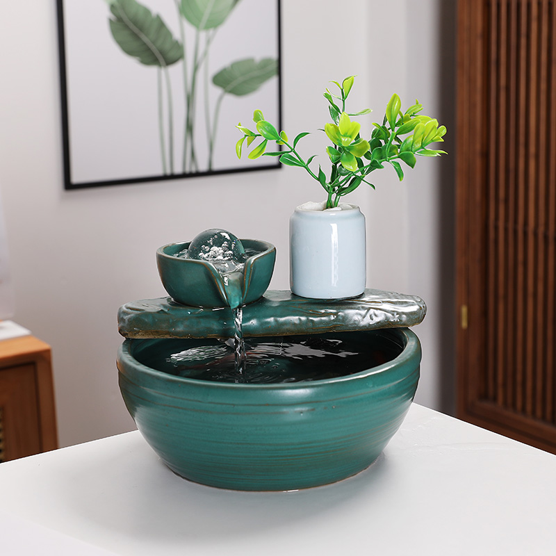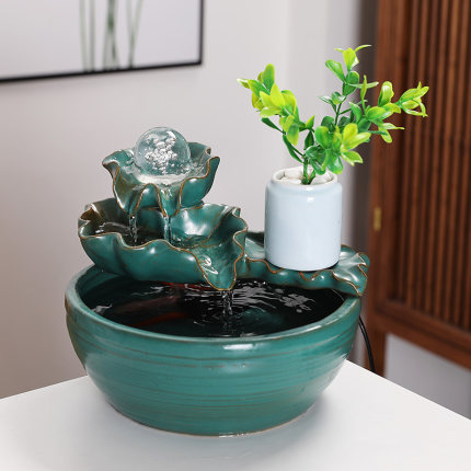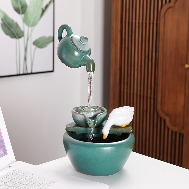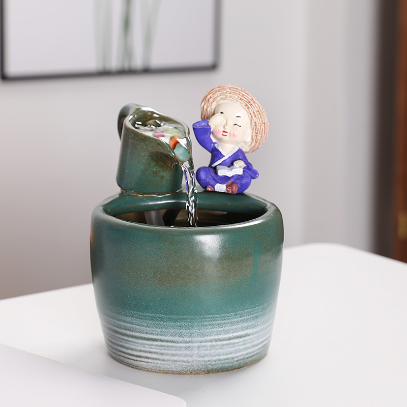 创意小型可爱招财流水生财摆件陶瓷水循环加湿器玄关乔迁开业礼品