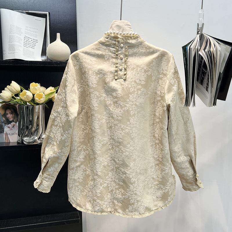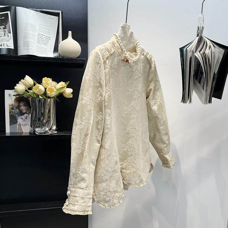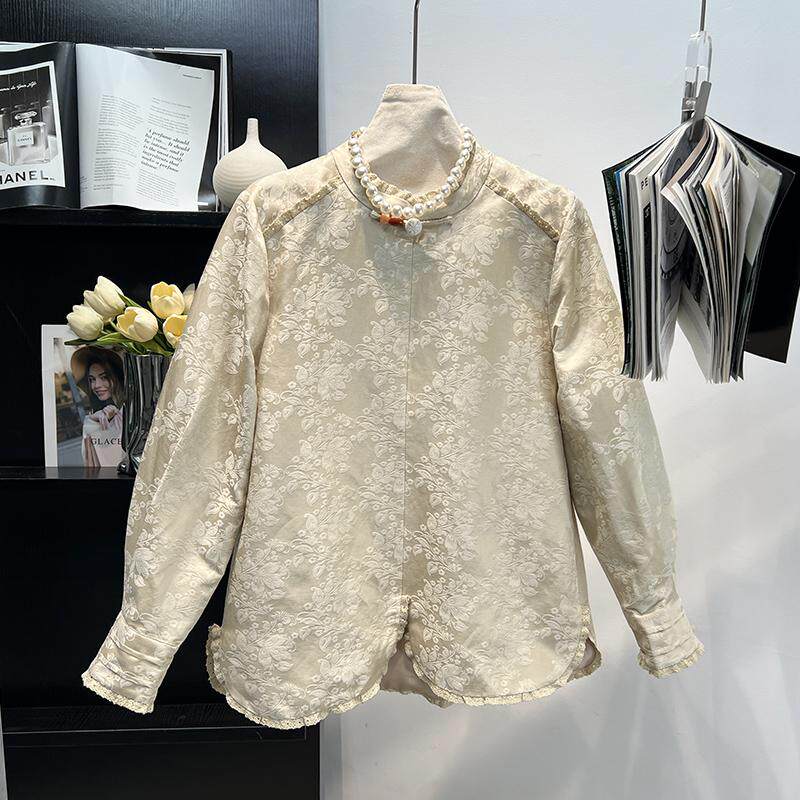 新中式国风真丝亚麻棉杏色衬衫上衣女2025早春季宽松减龄唐装外套