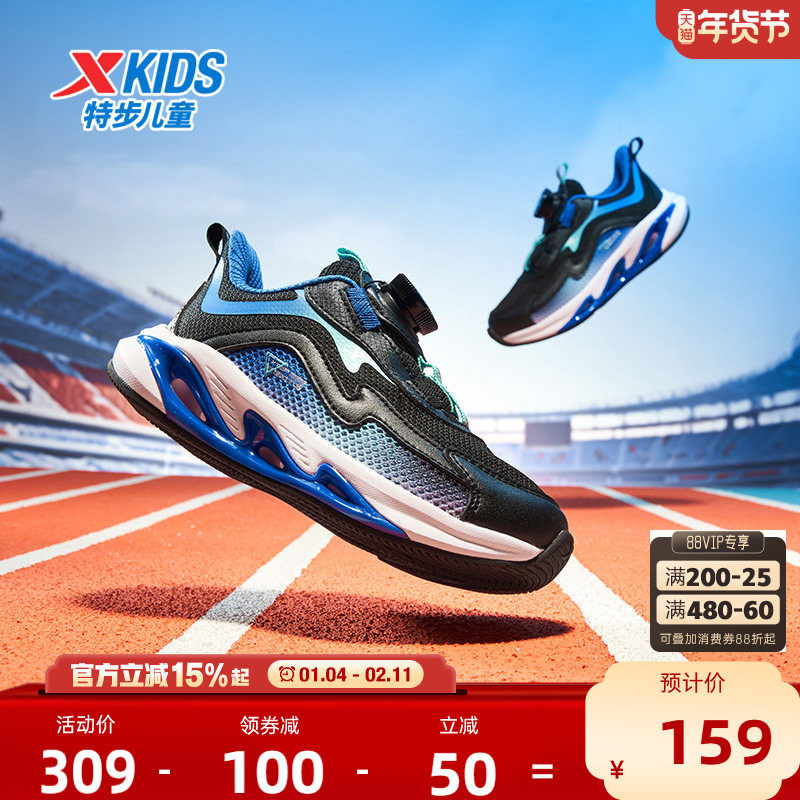 瞬影特步童鞋冬季儿童运动鞋幼小童男童回弹支撑耐磨旋转纽扣跑鞋