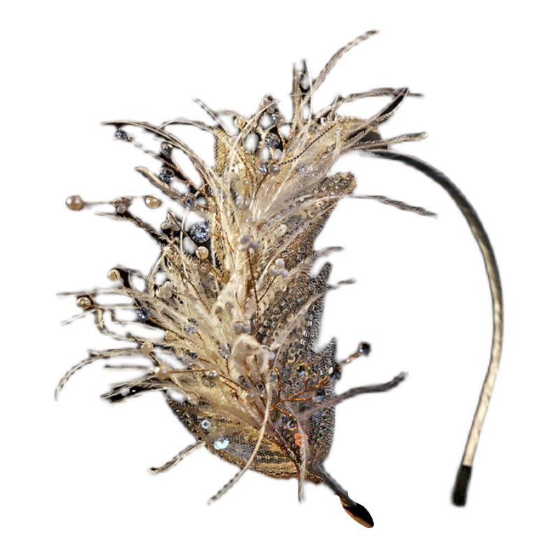 头饰儿童发箍演出走秀超仙美女童公主羽毛手腕花胸花闪钻法式发卡
