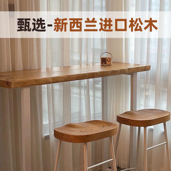 酒吧桌椅组合实木吧台桌椅墙阳台休闲高脚长条桌吧台靠家用