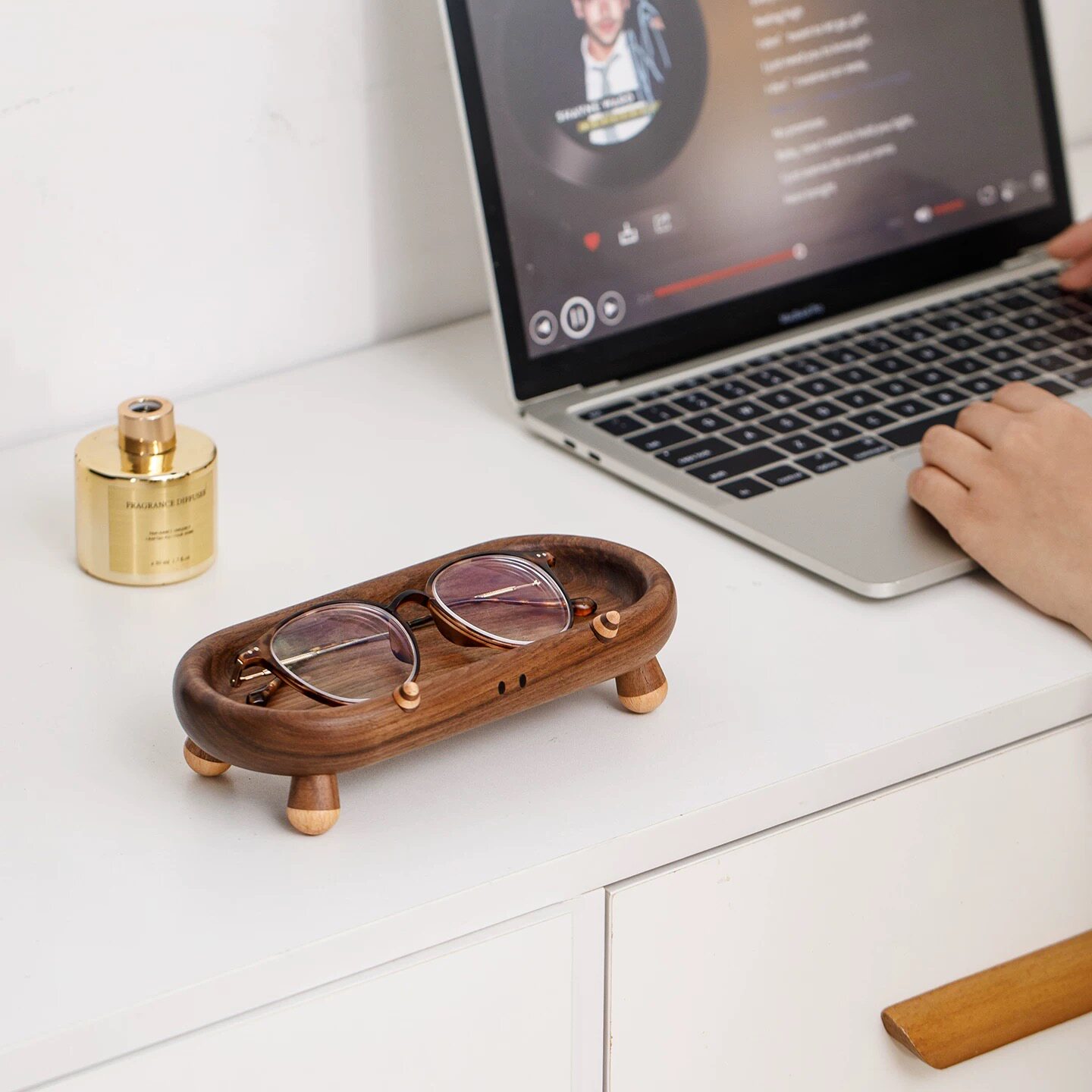 黑胡桃木小怪兽实木放置架桌面家用置物架创意收纳展示架托盘摆件