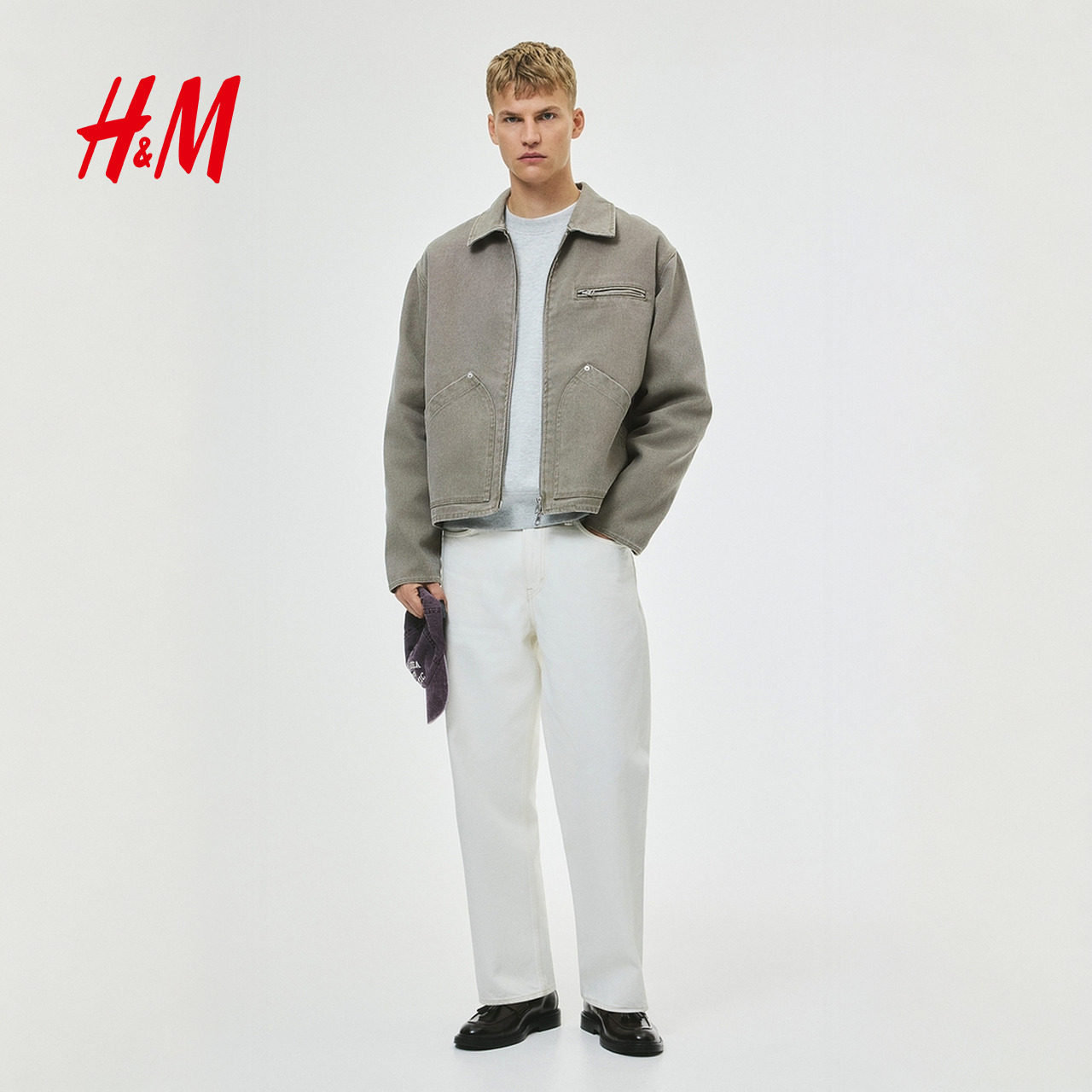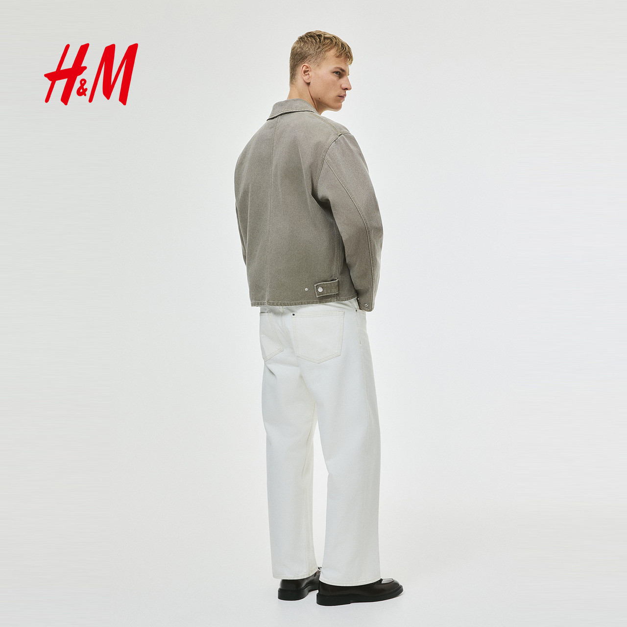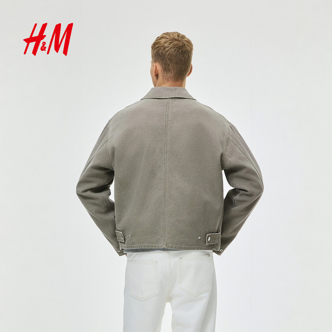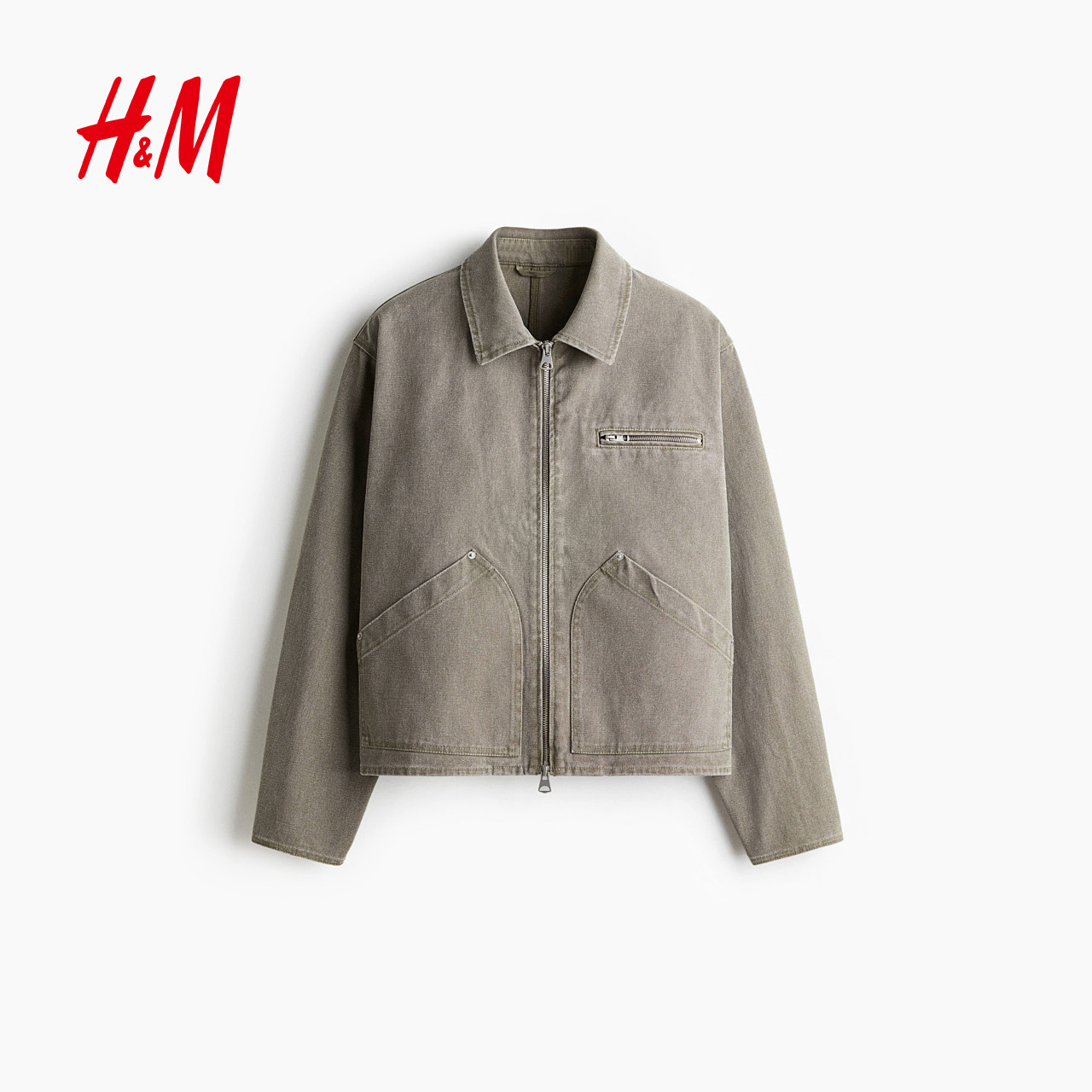 HM男装夹克2025冬新款工装翻领宽松巴恩风帆布底特律外套1296874