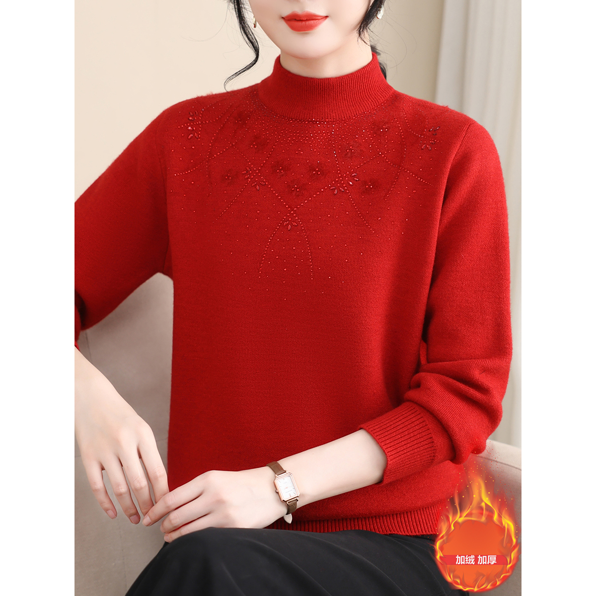 胖妈妈冬装新款加绒加厚毛衣女大码打底衫中老年人保暖内搭上衣服