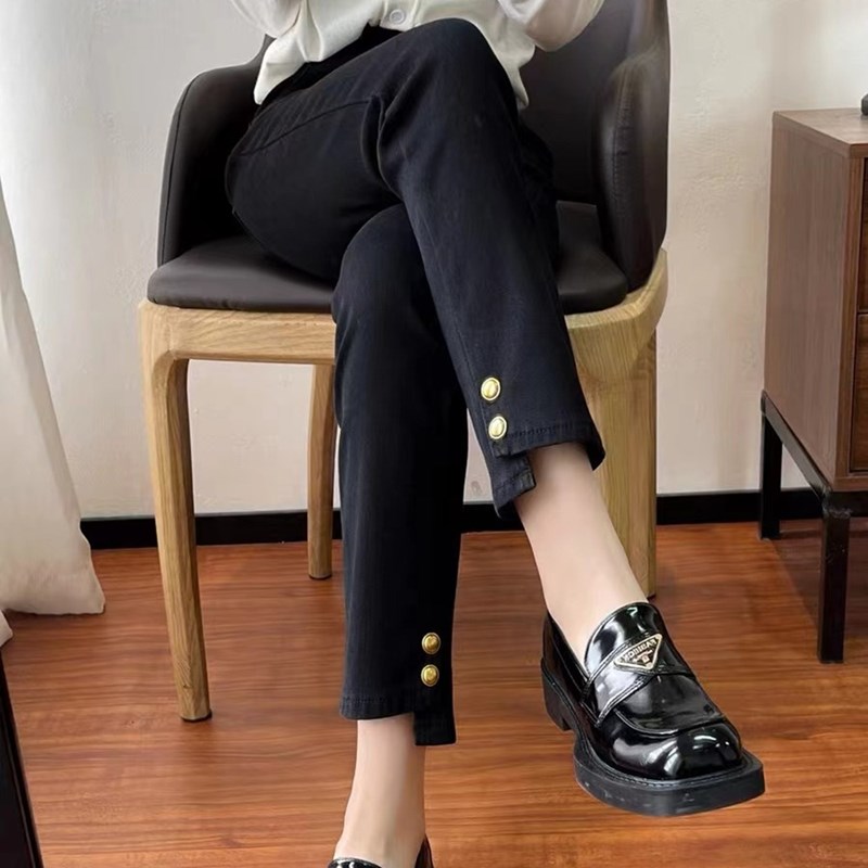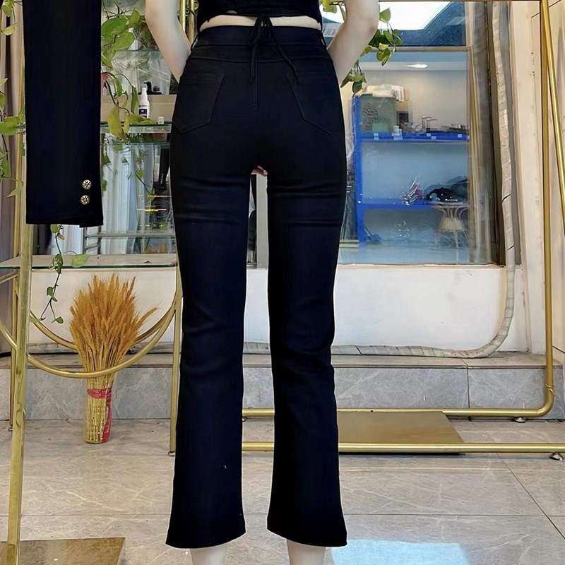 2024春季新款黑色直筒牛仔裤时尚修身显瘦九分纽扣烟管裤微喇裤女
