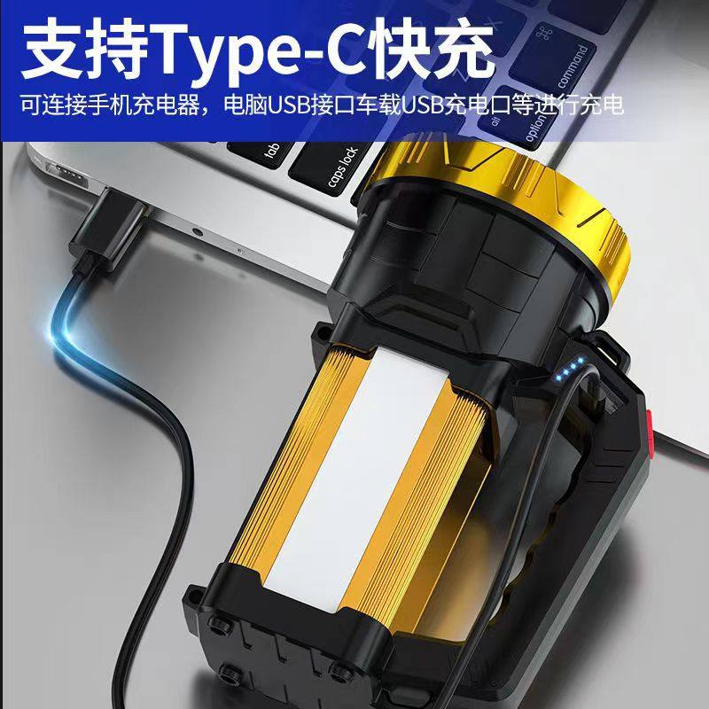 超长续航手提灯探照灯侧灯家用户外超亮远射大容量手电筒强光充电