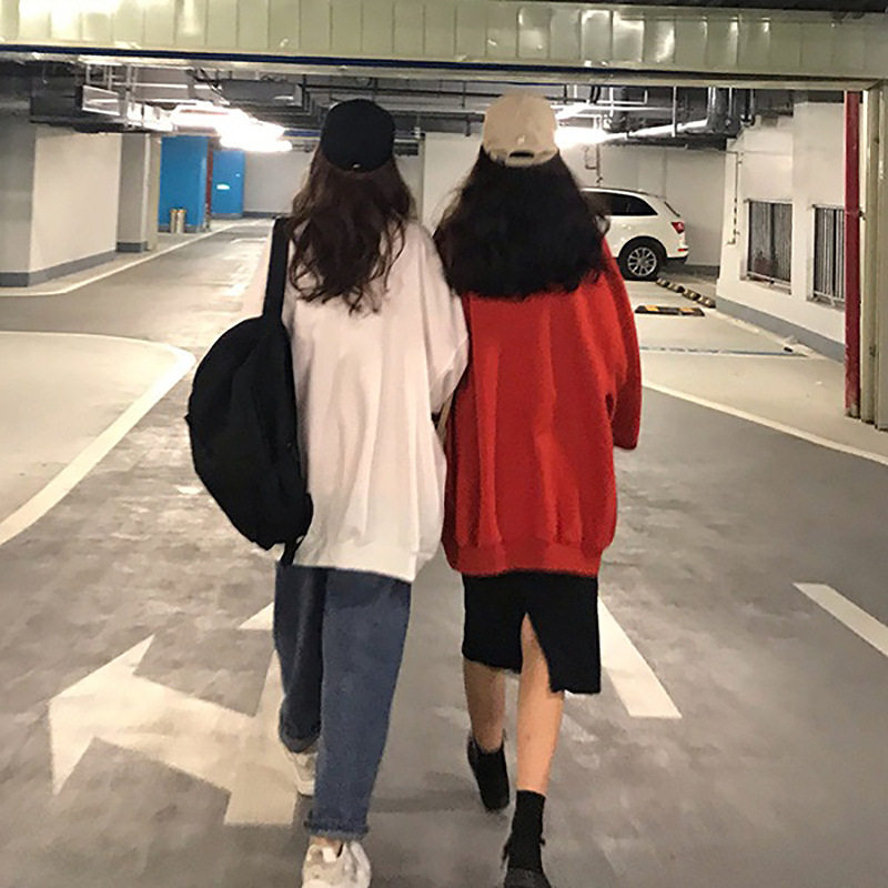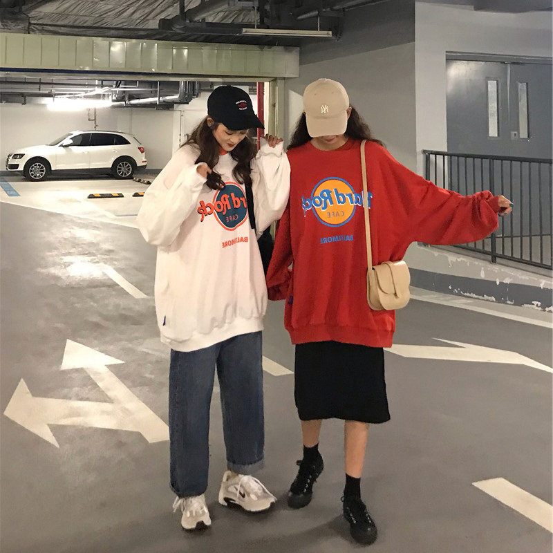 超火圆领卫衣女2023秋季新款薄款外套韩版潮原宿BF学生宽松上衣服