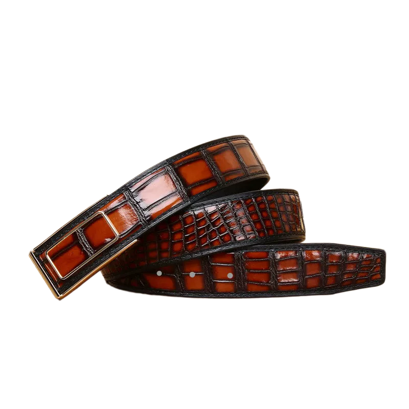 泰国进口鳄鱼皮皮带男真皮男士腰带平滑扣针扣自动扣裤带无头腰带