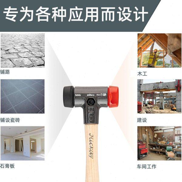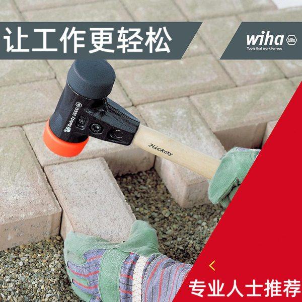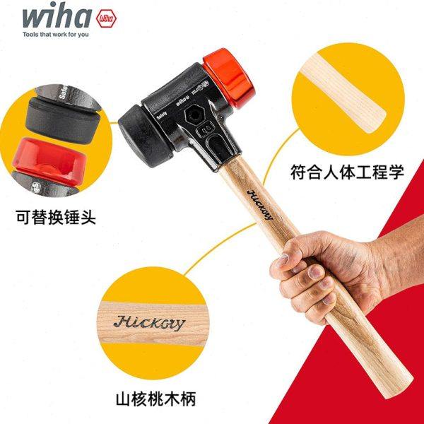 德国wiha威汉安装锤832-38红黑中硬塑胶锤子圆头橡胶锤进口木柄