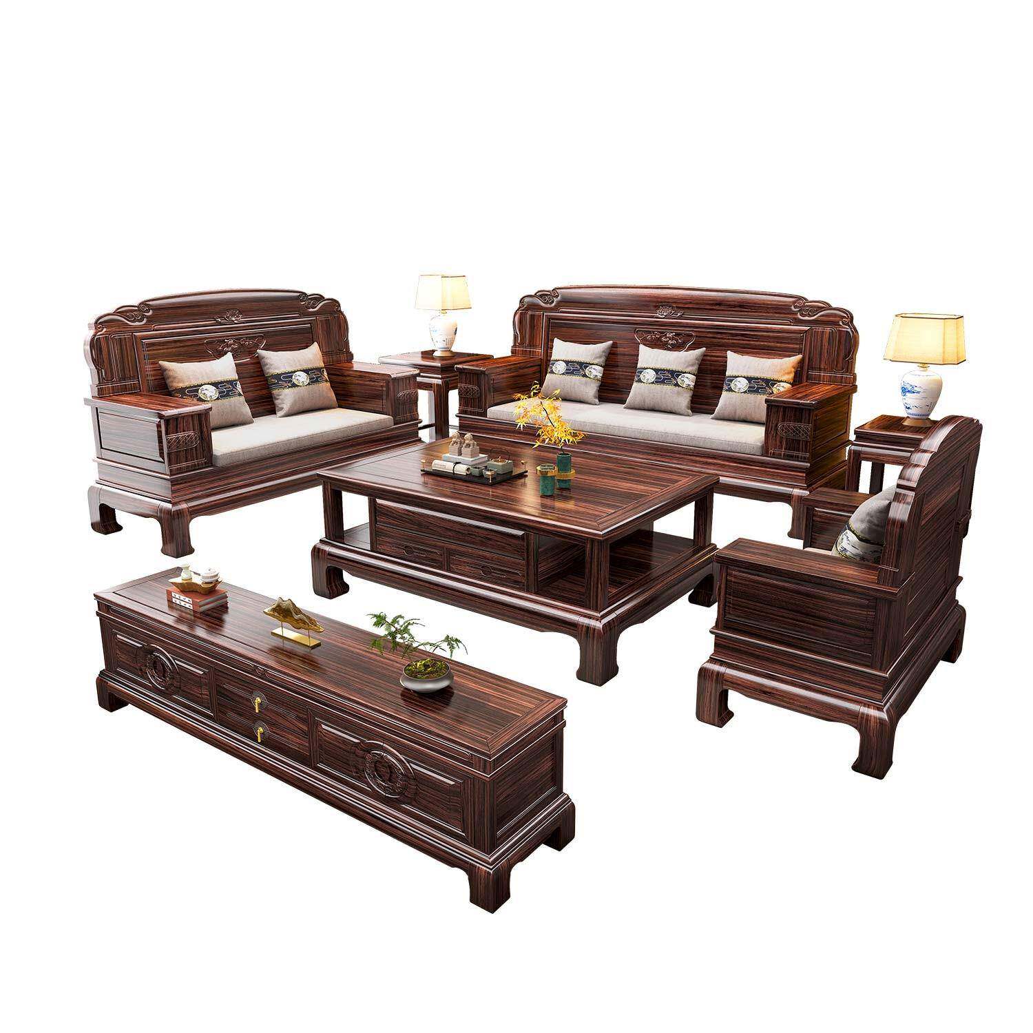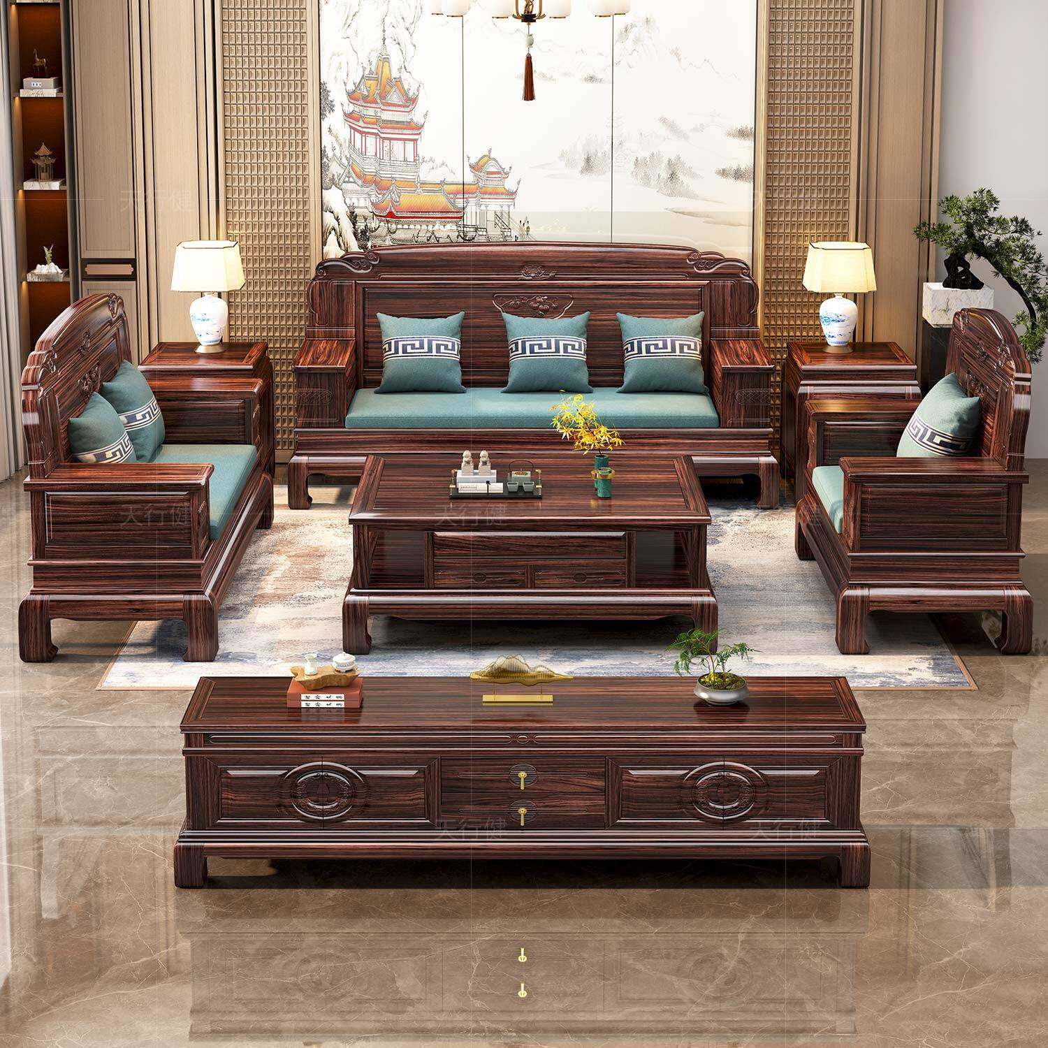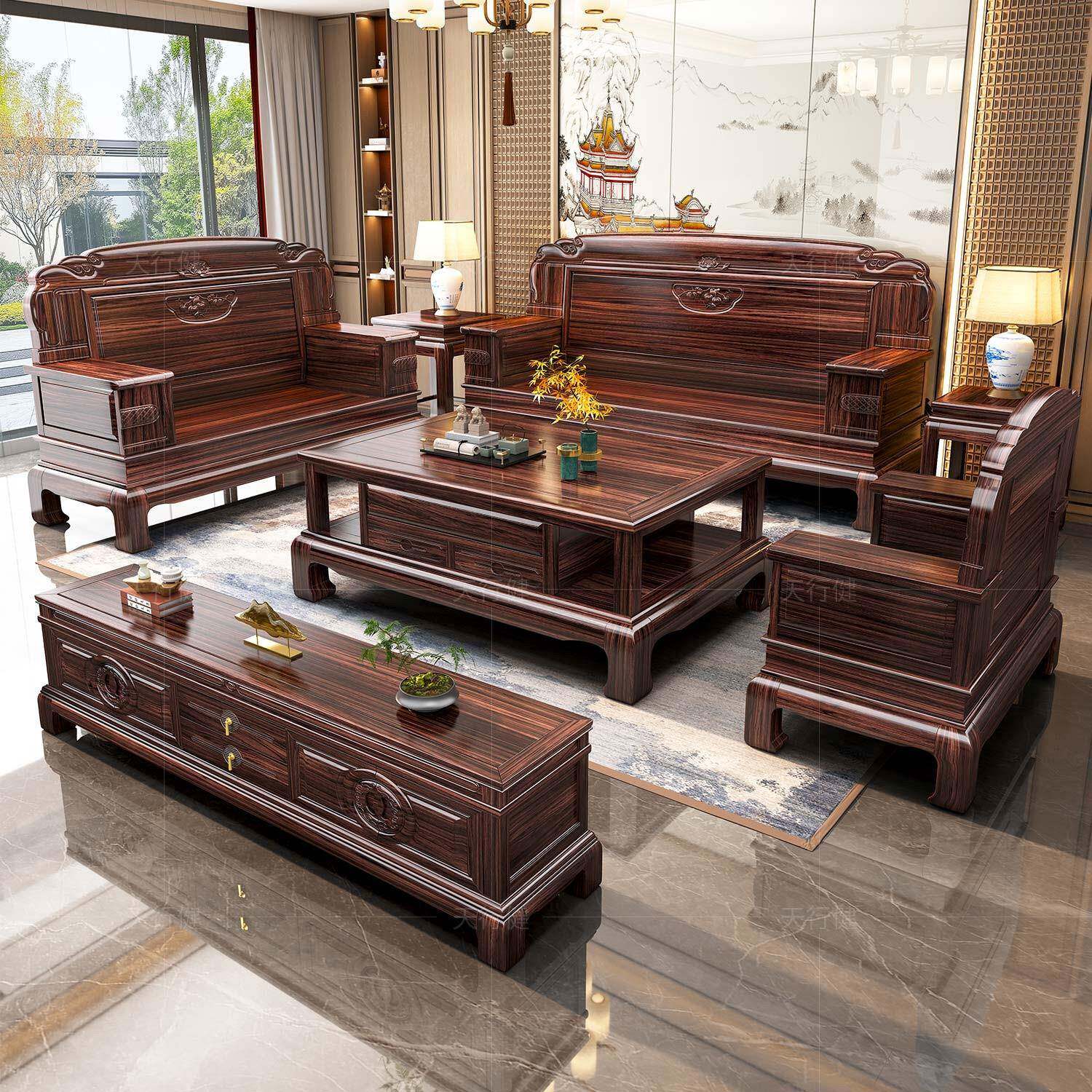 新中式乌金木实木沙发客厅组合大小户型冬夏两用高端别墅木质家具