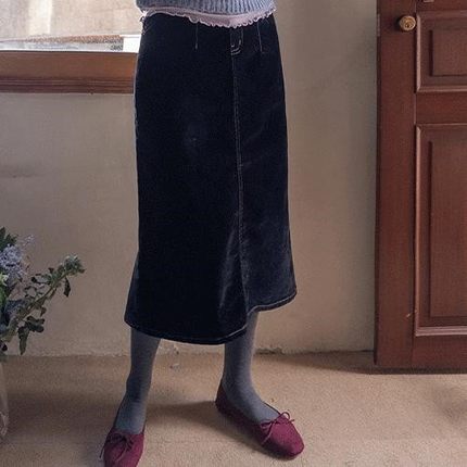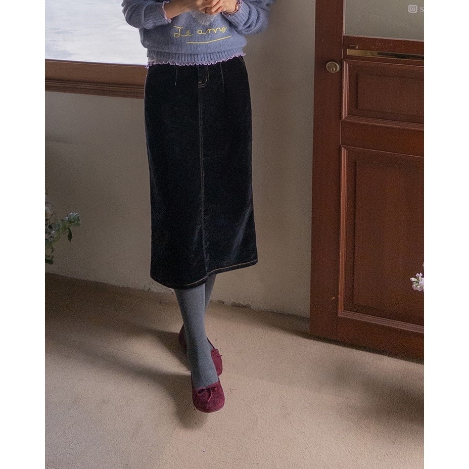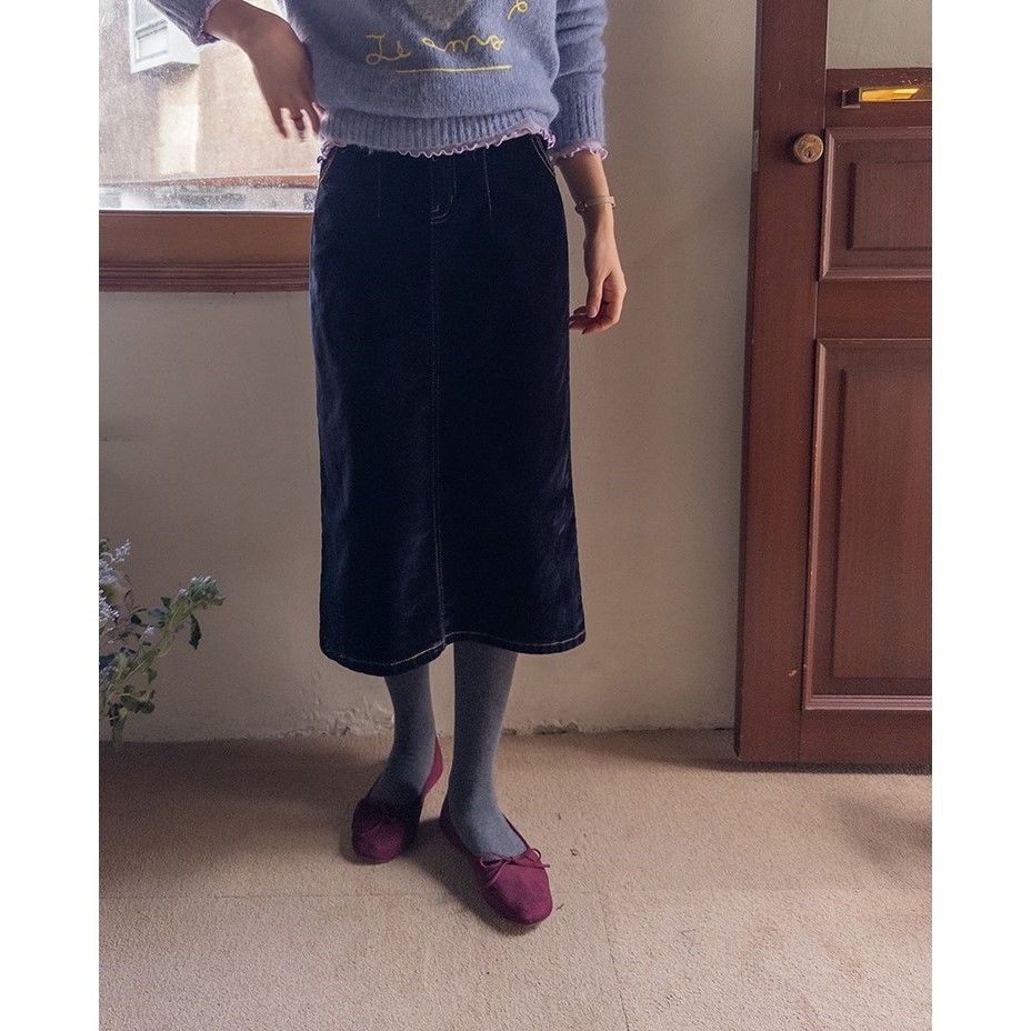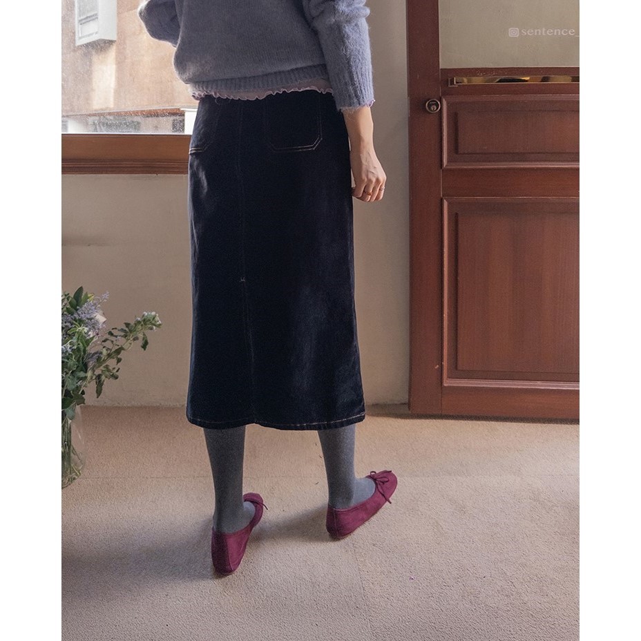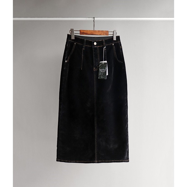 直邮 首尔印象韩代 25fw 高腰H型后开叉牛仔中长半身裙秋冬新款女