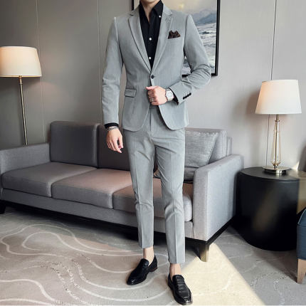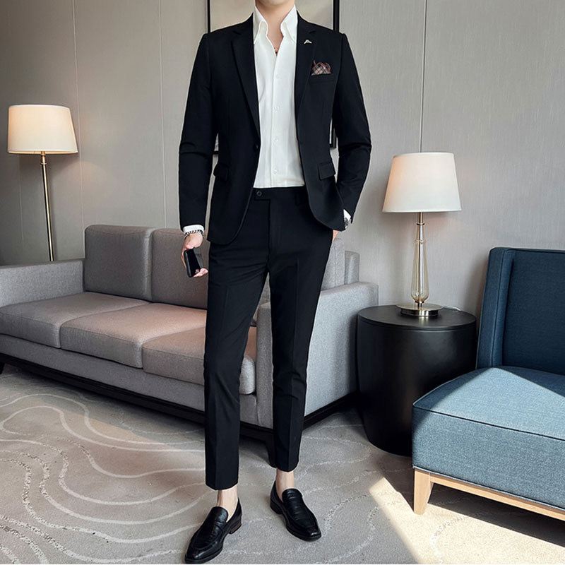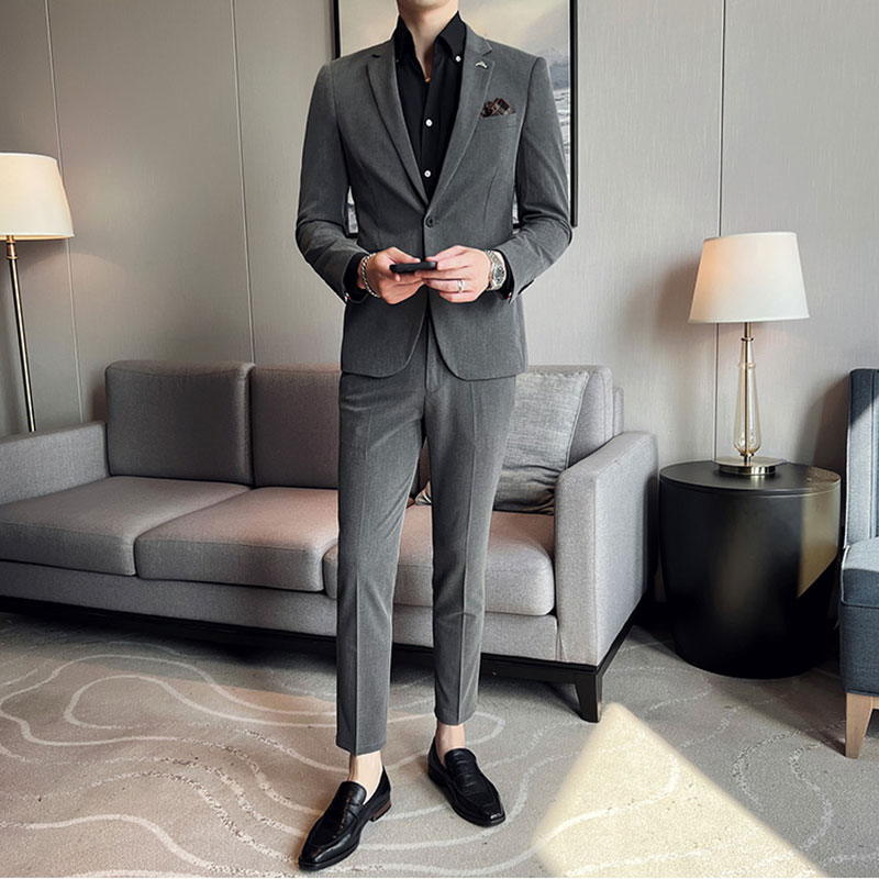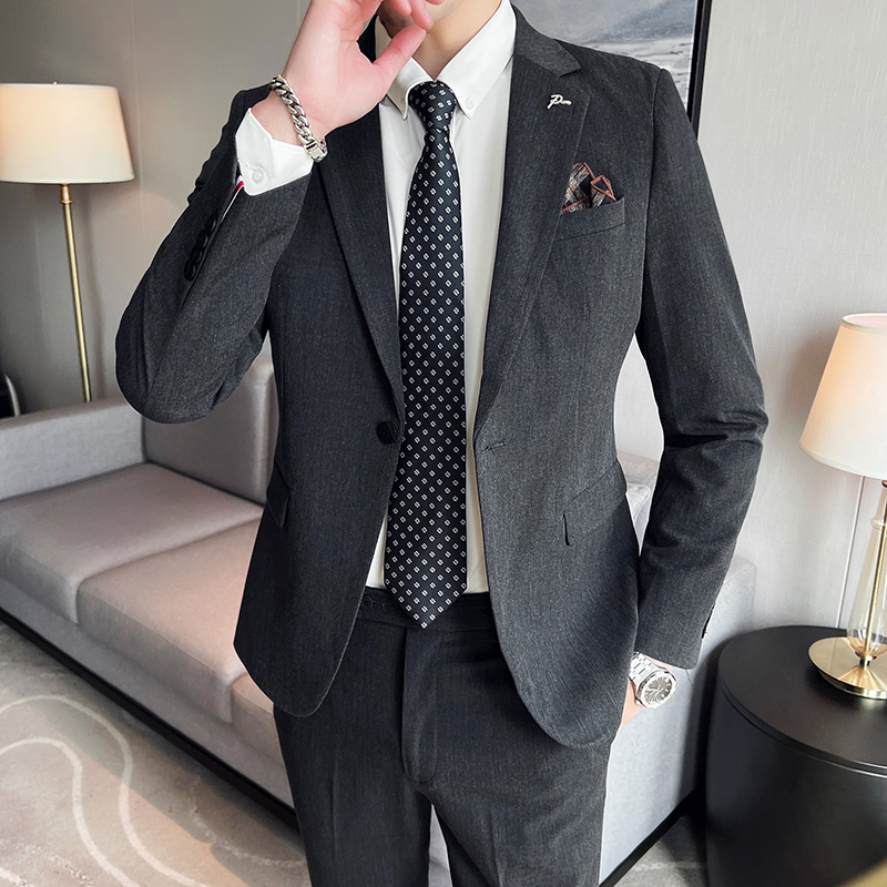 西服套装男纯色商务正装伴郎韩版修身青年帅气新郎结婚高档小礼服