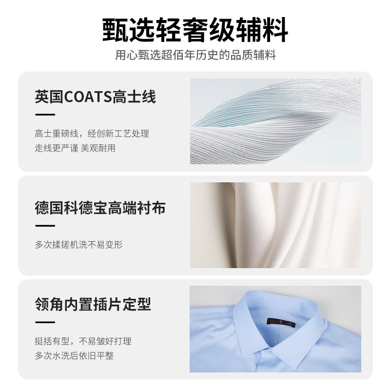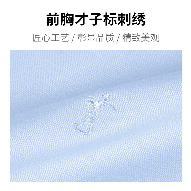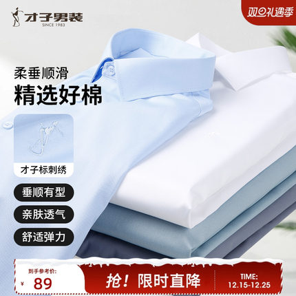 才子长袖衬衫男士2025秋季新款打底内搭修身刺绣商务正装白色衬衫