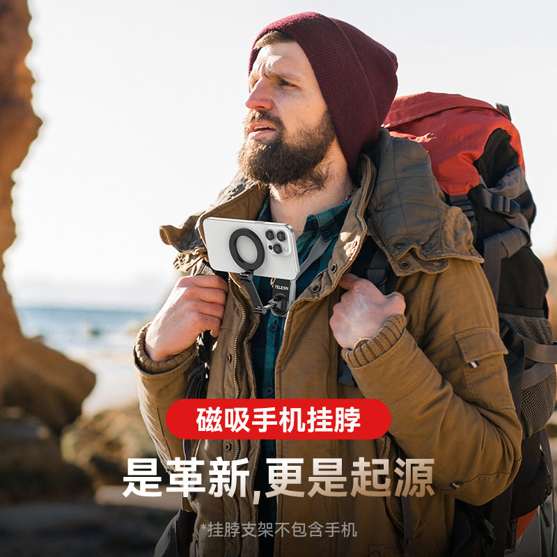 适用苹果手机磁吸挂脖支架户外徒步跑步直播挂脖快拆第一视角拍摄