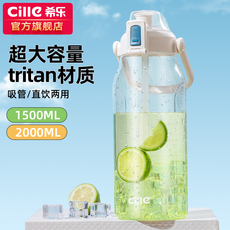 双饮大容量水杯水壶运动2000ml刻度塑料吸管杯子耐高温水瓶男女款