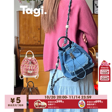 Tagi.Mini 怦怦小花麂皮铆钉双肩包旅行便携口袋抽绳束口包